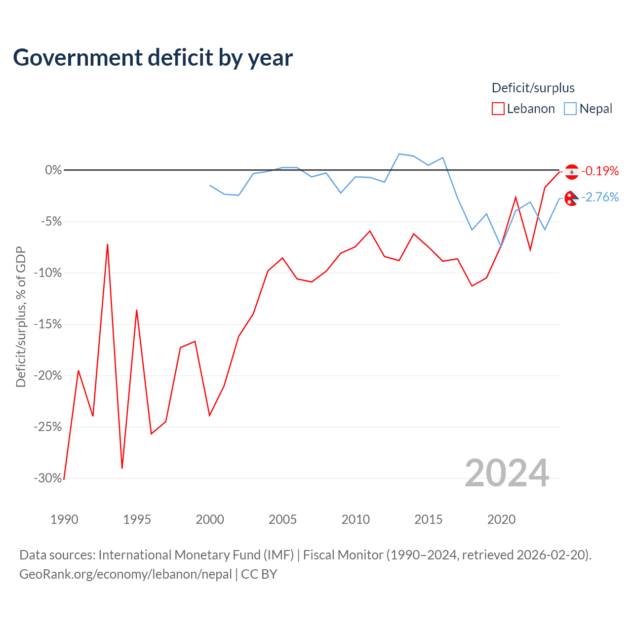 - International Monetary Fund (IMF) | Fiscal Monitor (1990–2024, retrieved 2026-02-20)
