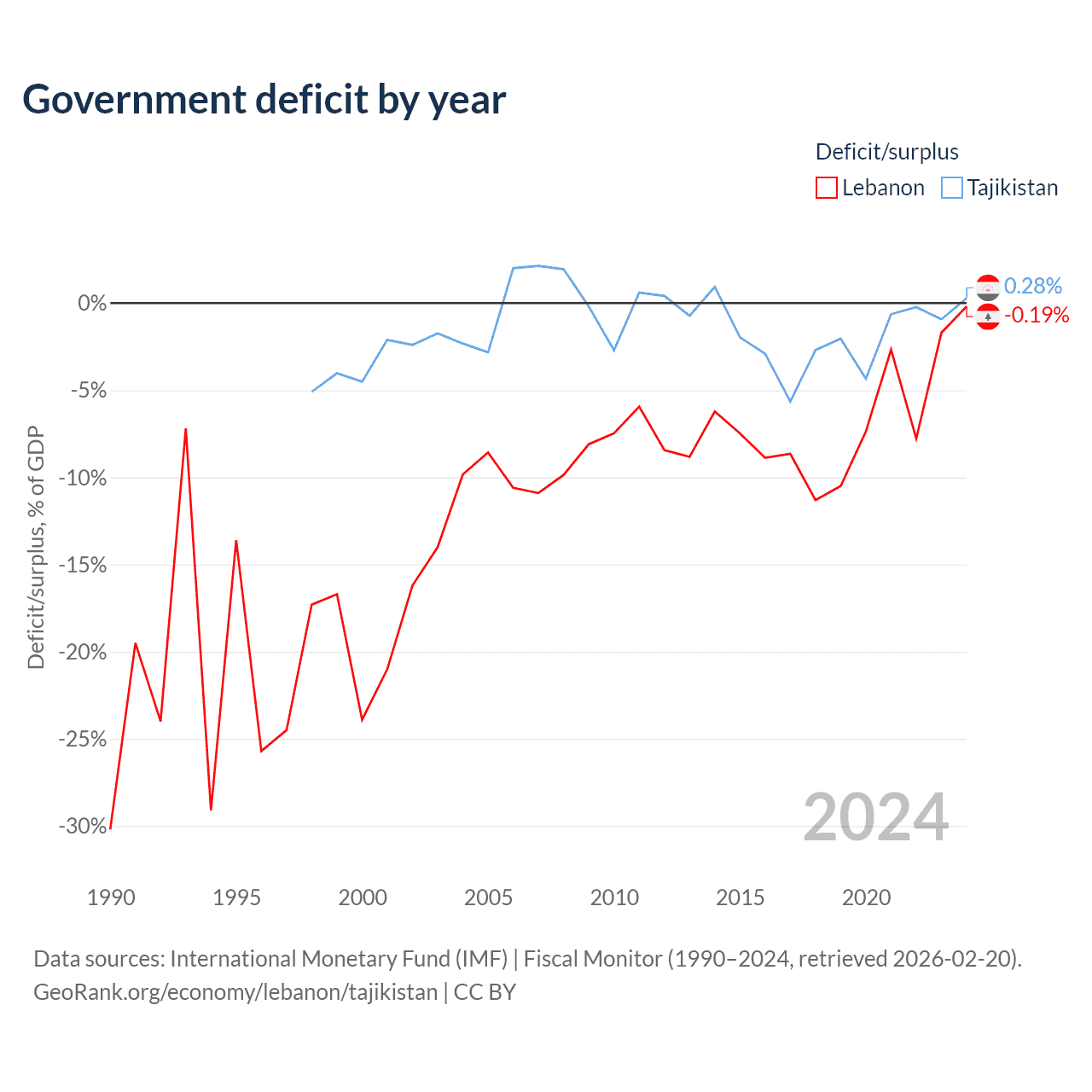 - International Monetary Fund (IMF) | Fiscal Monitor (1990–2024, retrieved 2026-02-20)