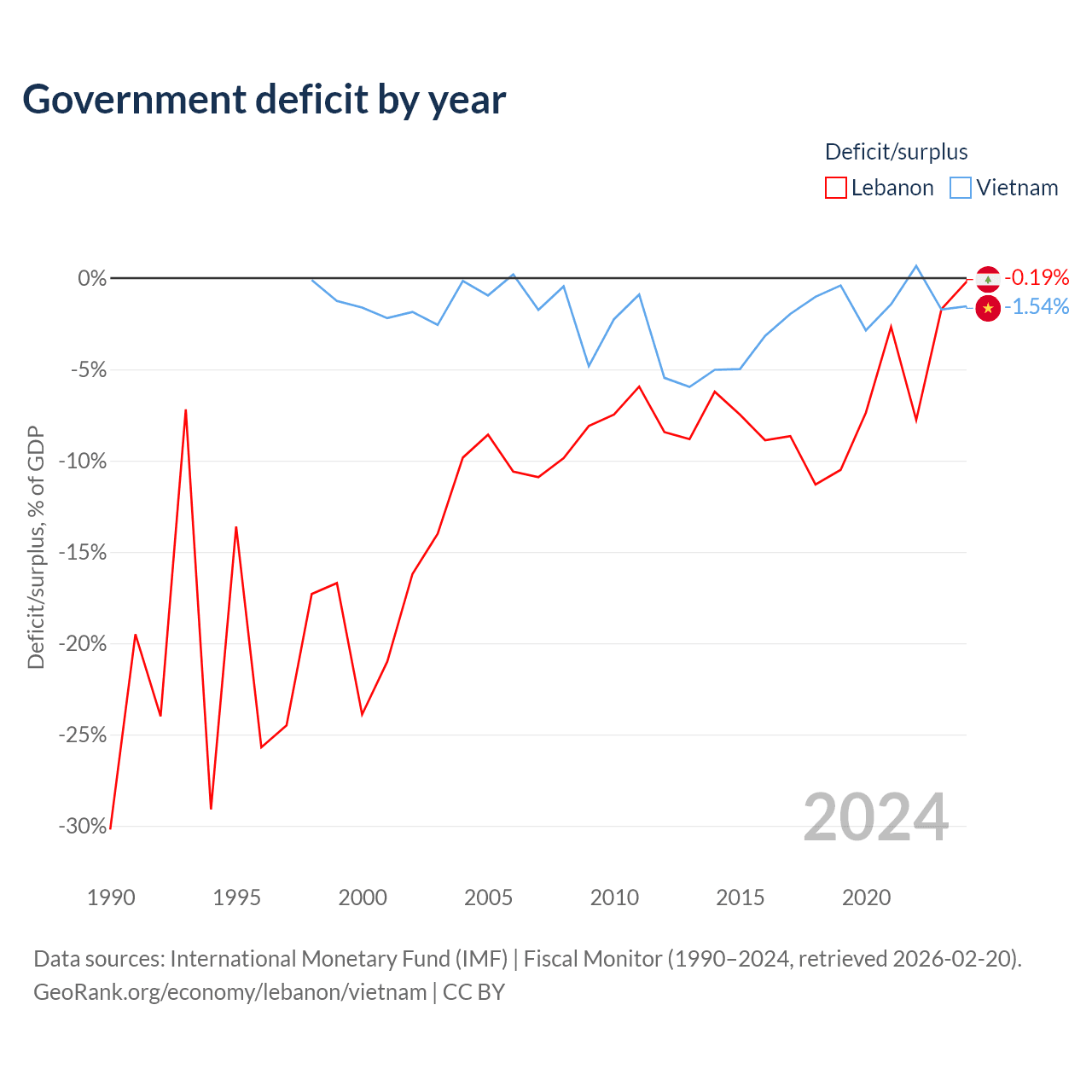 - International Monetary Fund (IMF) | Fiscal Monitor (1990–2024, retrieved 2026-02-20)