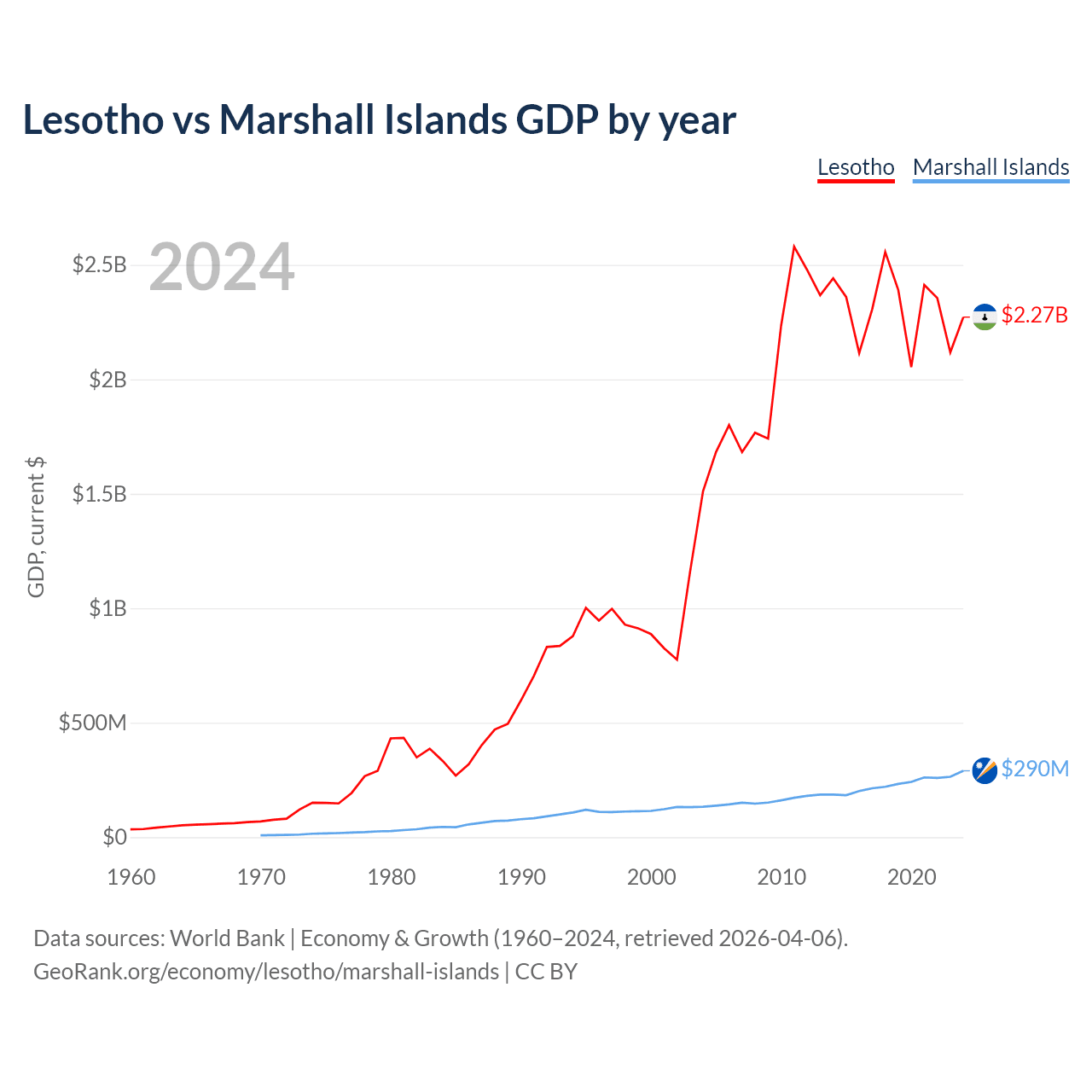 Lesotho vs Marshall Islands GDP by year