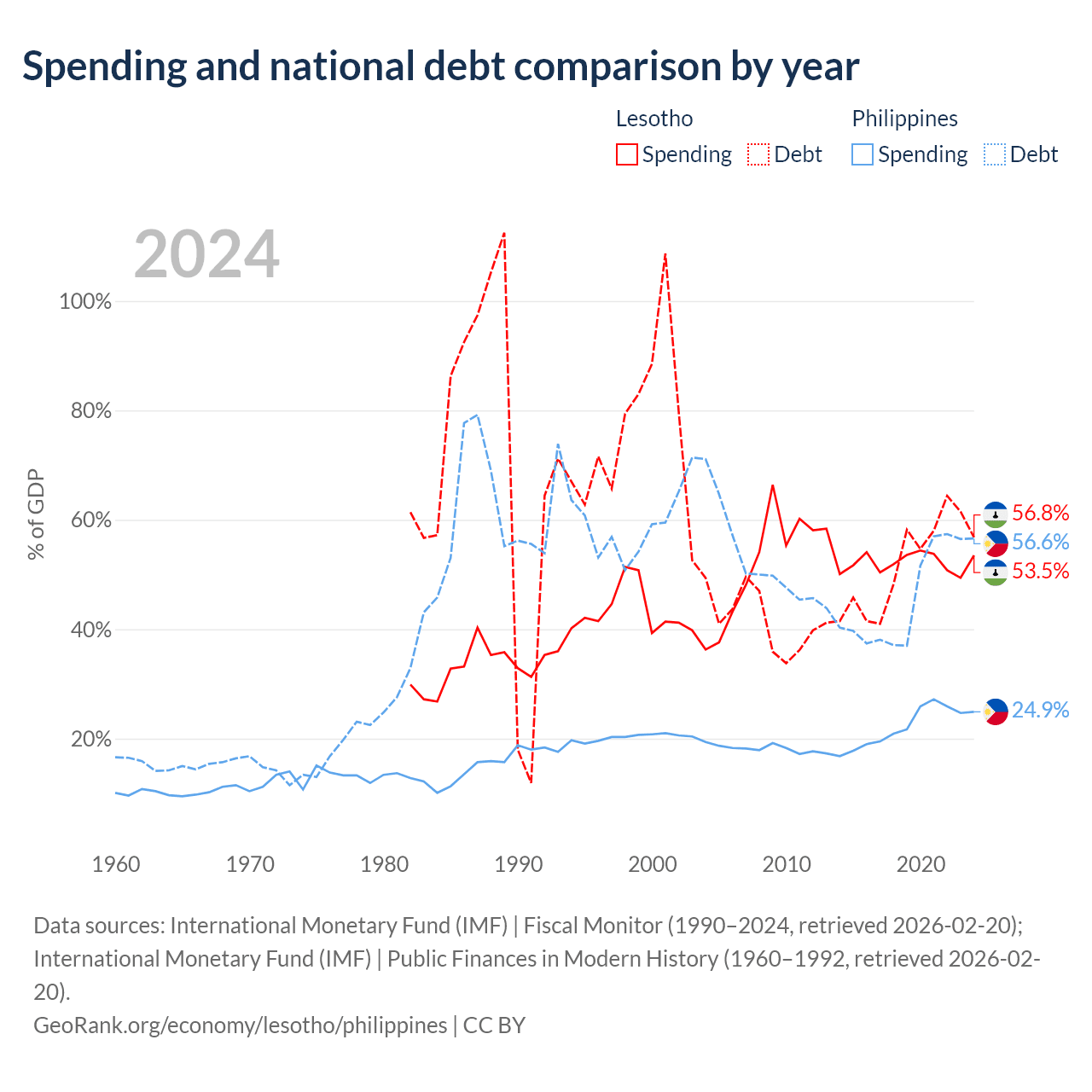 Lesotho has $1.29B in government debt (56.8% of GDP), compared to $261B (56.6% of GDP) in the Philippines.