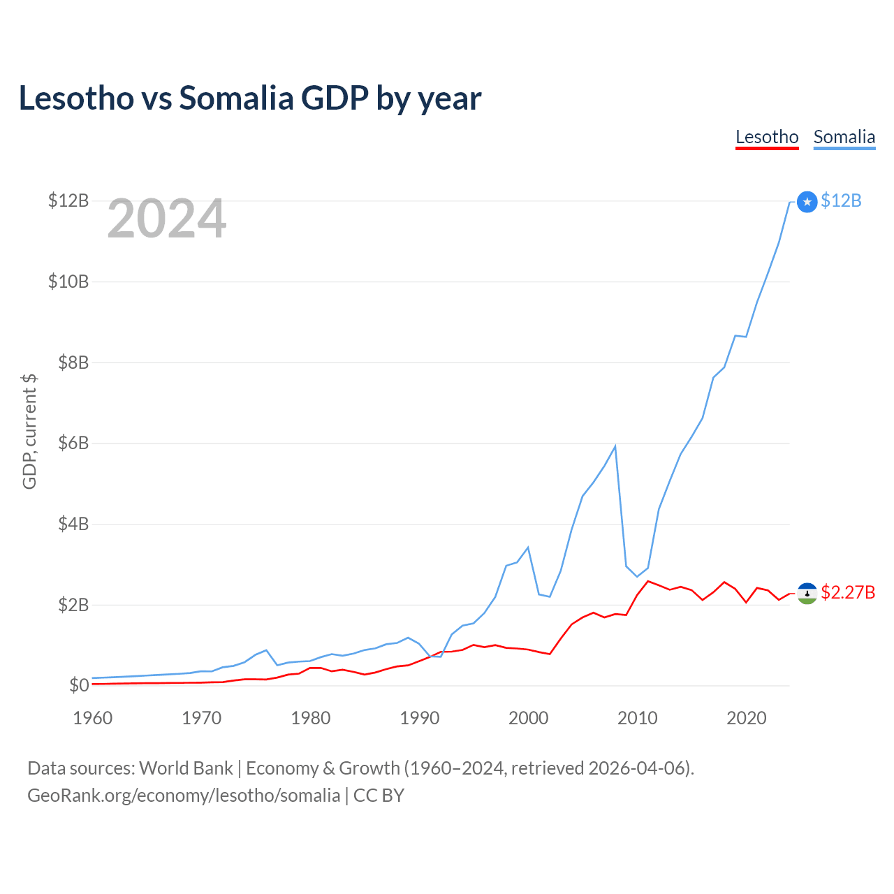 Lesotho vs Somalia GDP by year