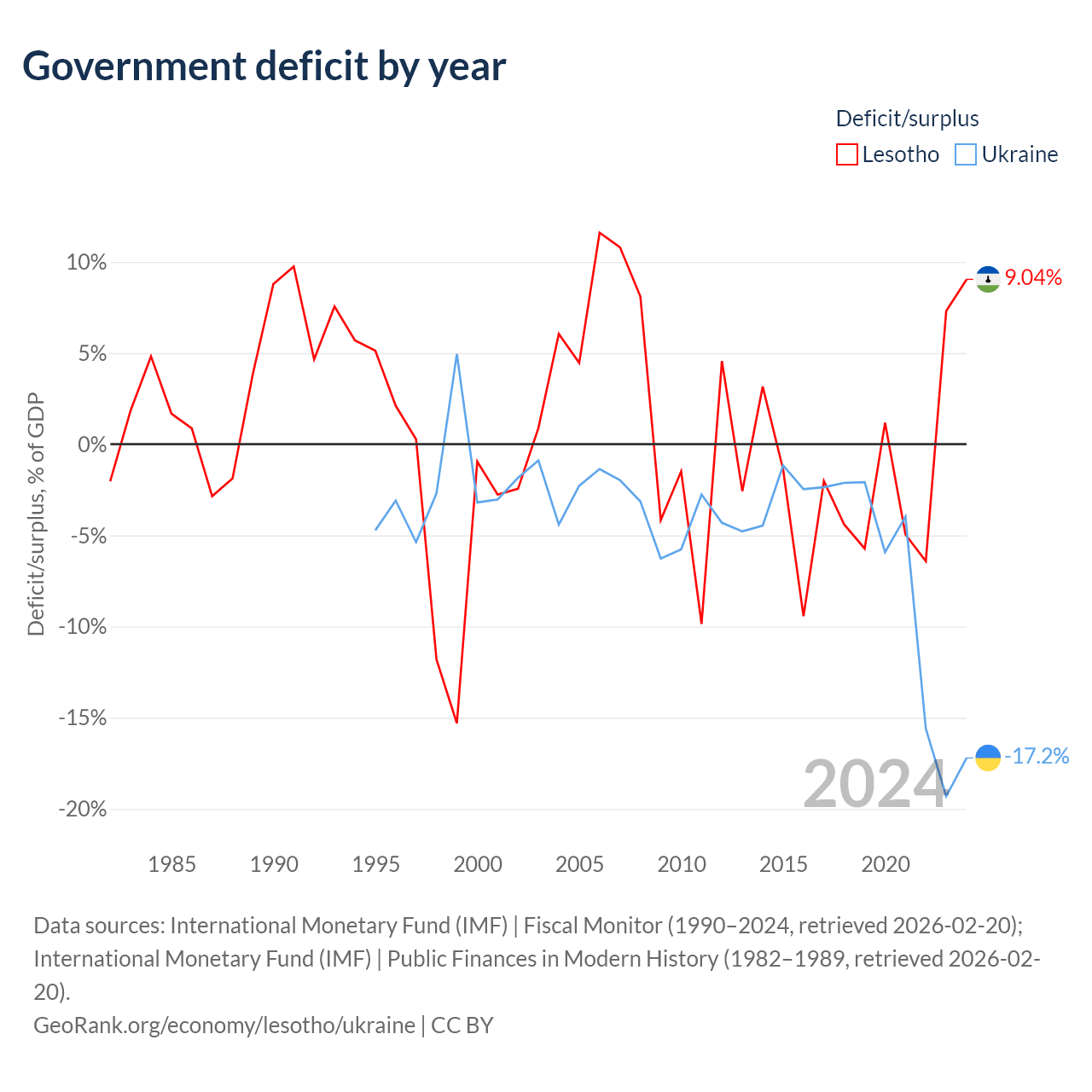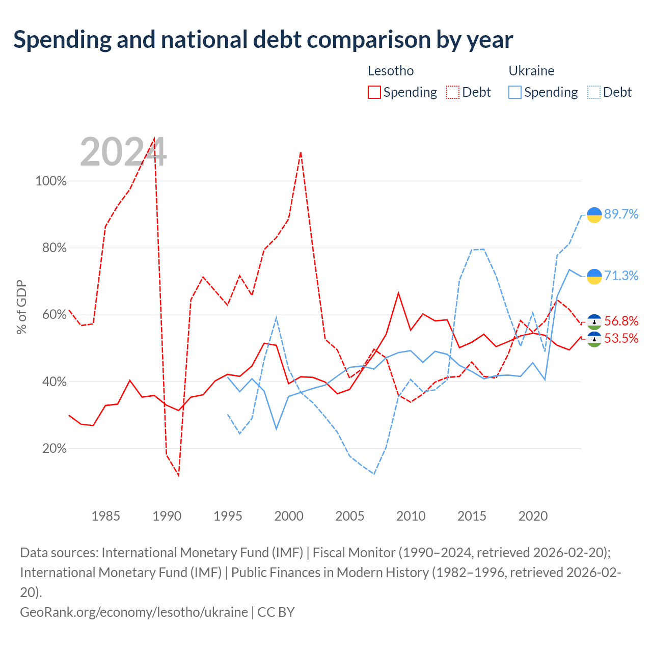 Lesotho has $1.29B in government debt (56.8% of GDP), compared to $171B (89.7% of GDP) in Ukraine.