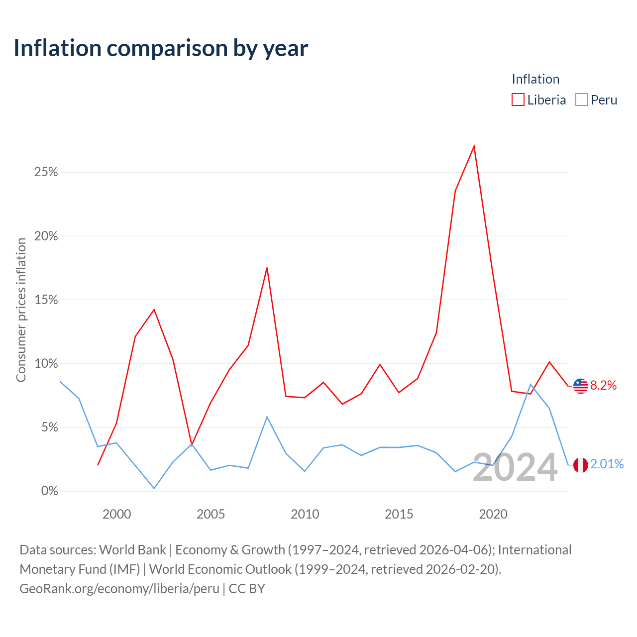 Liberia vs Peru GDP by year