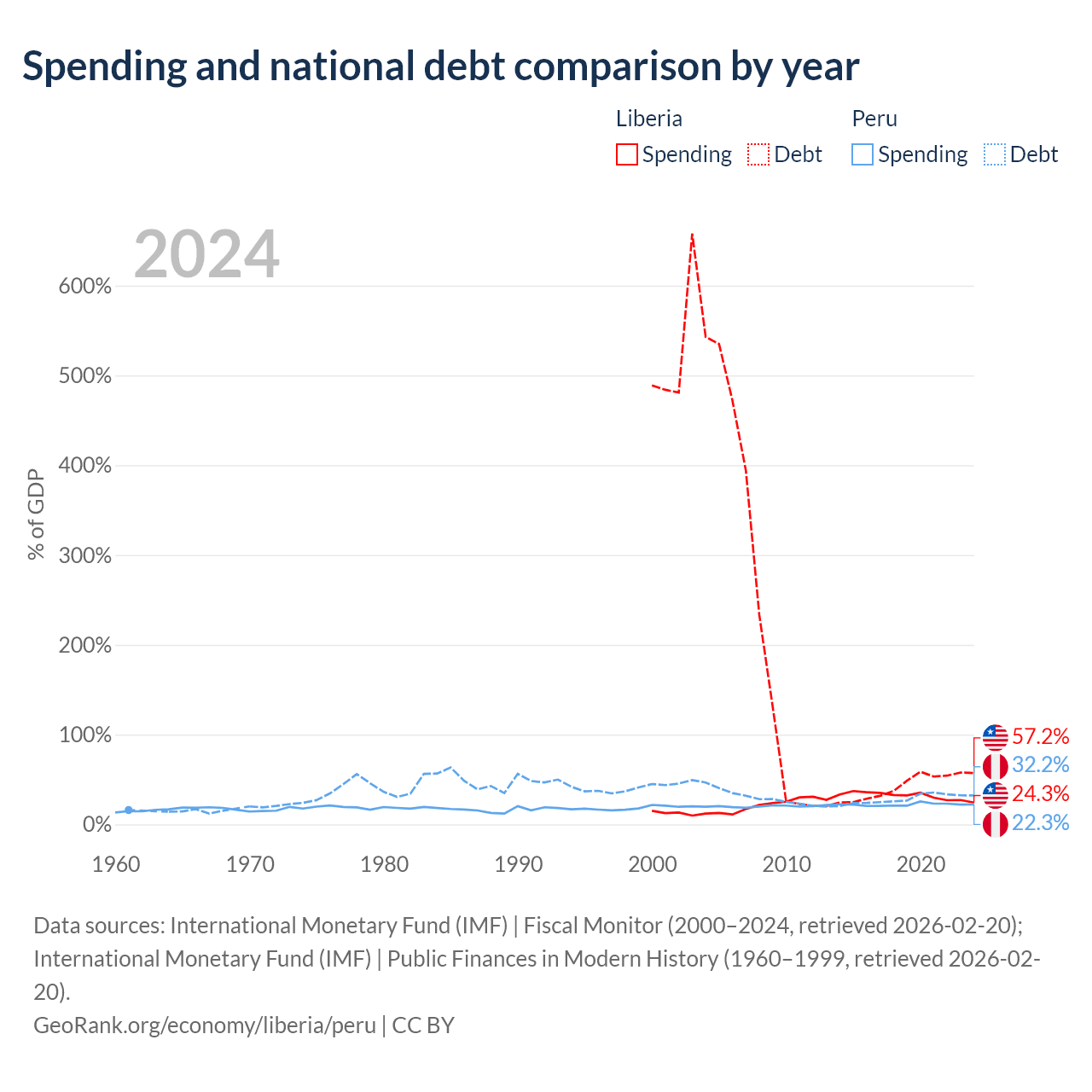 Liberia has $2.73B in government debt (57.2% of GDP), compared to $93B (32.2% of GDP) in Peru.