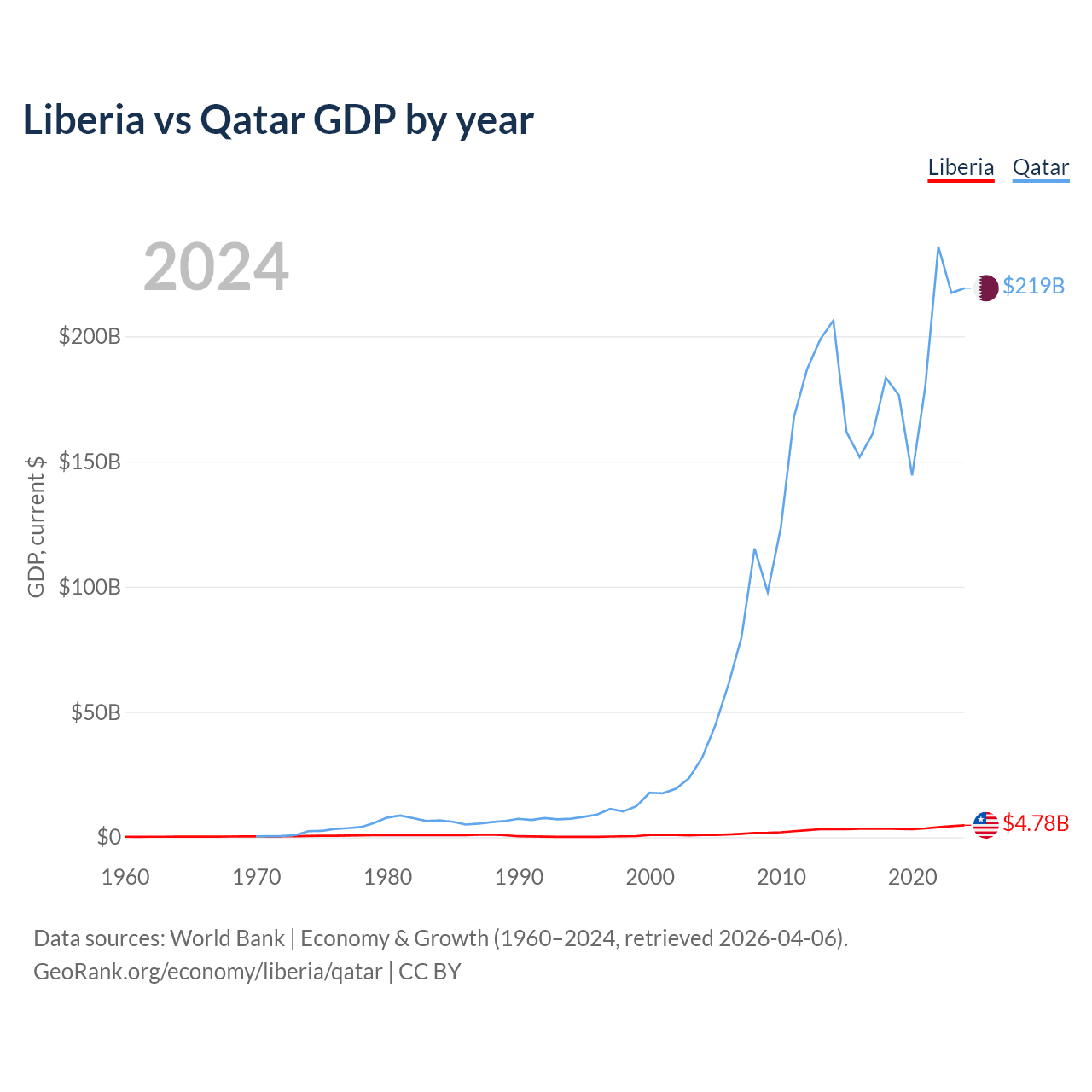 Liberia vs Qatar GDP by year