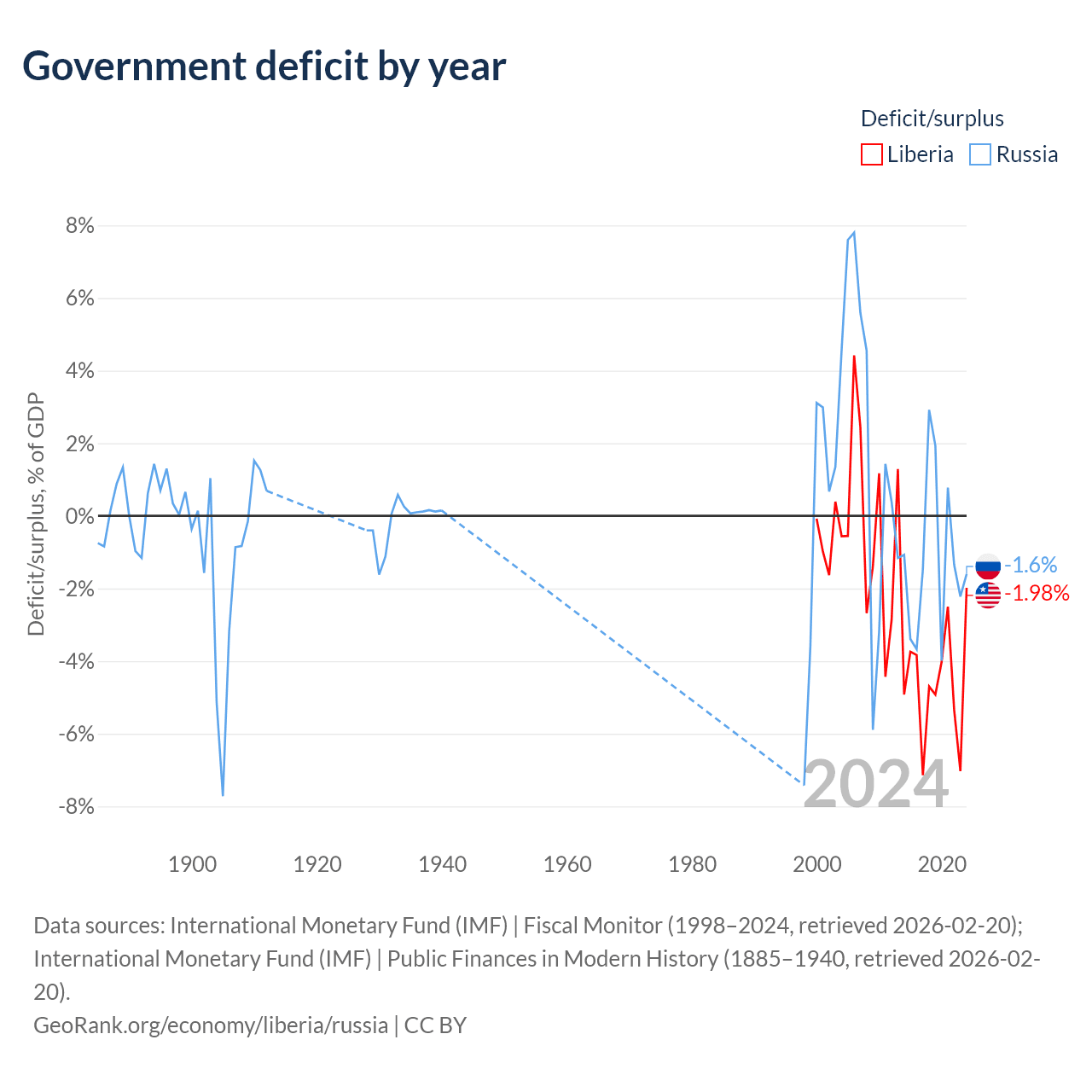 - International Monetary Fund (IMF) | Public Finances in Modern History (1885–1996, retrieved 2026-02-20)