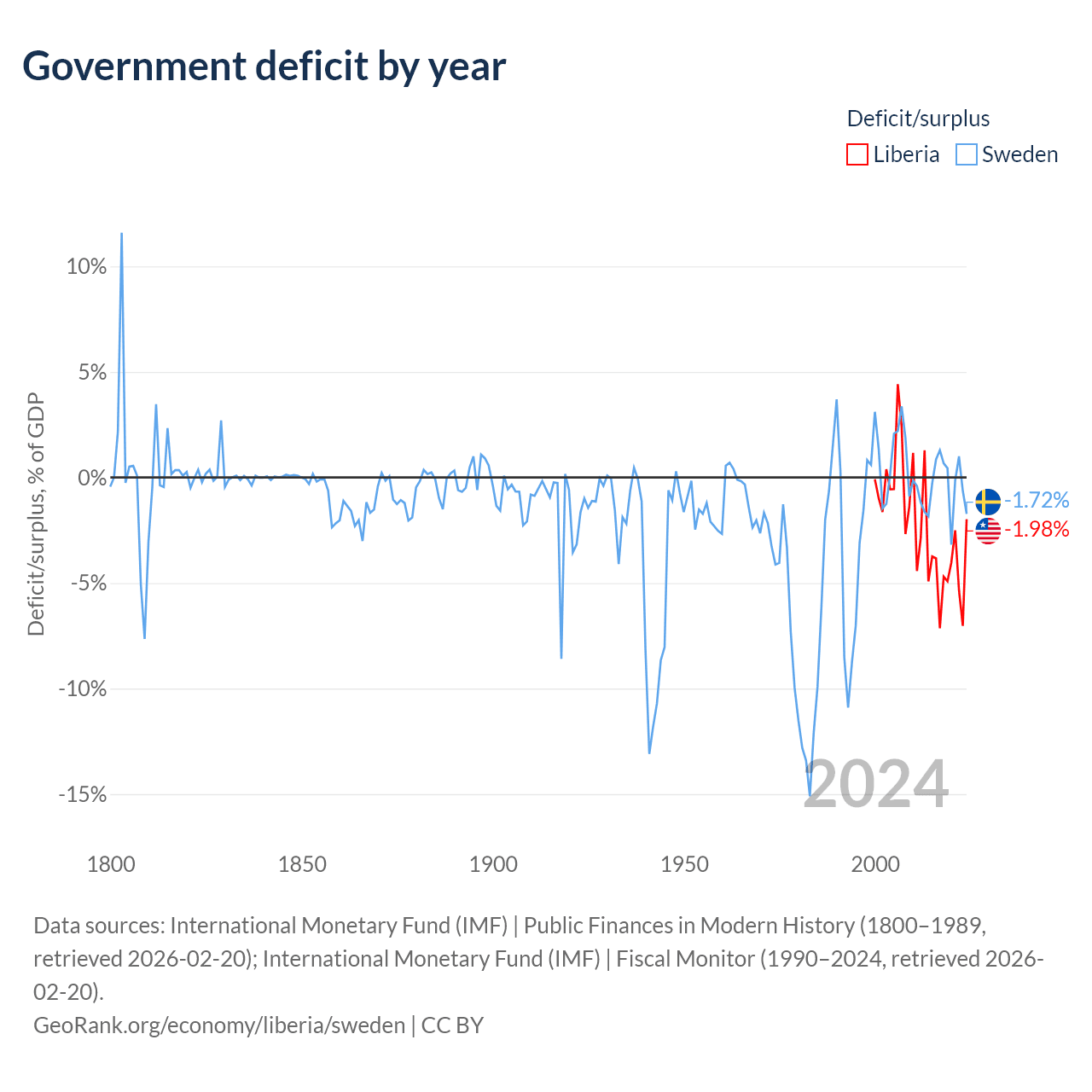 Liberia has $2.73B in government debt (57.2% of GDP), compared to $199B (33% of GDP) in Sweden.
