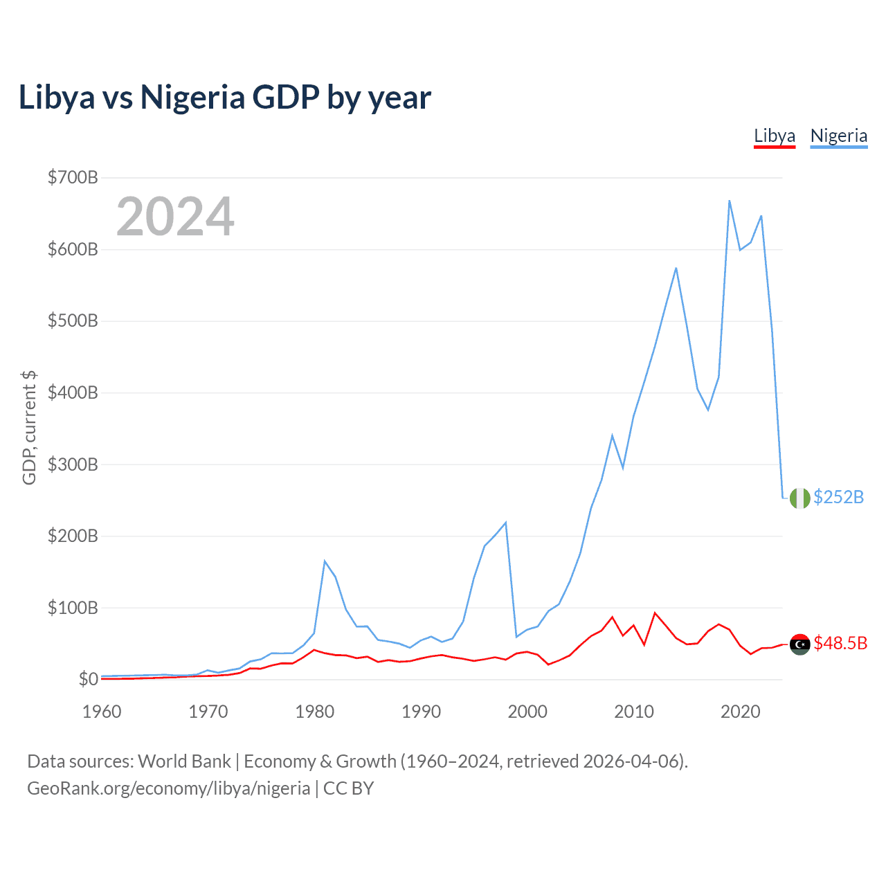Libya vs Nigeria GDP by year