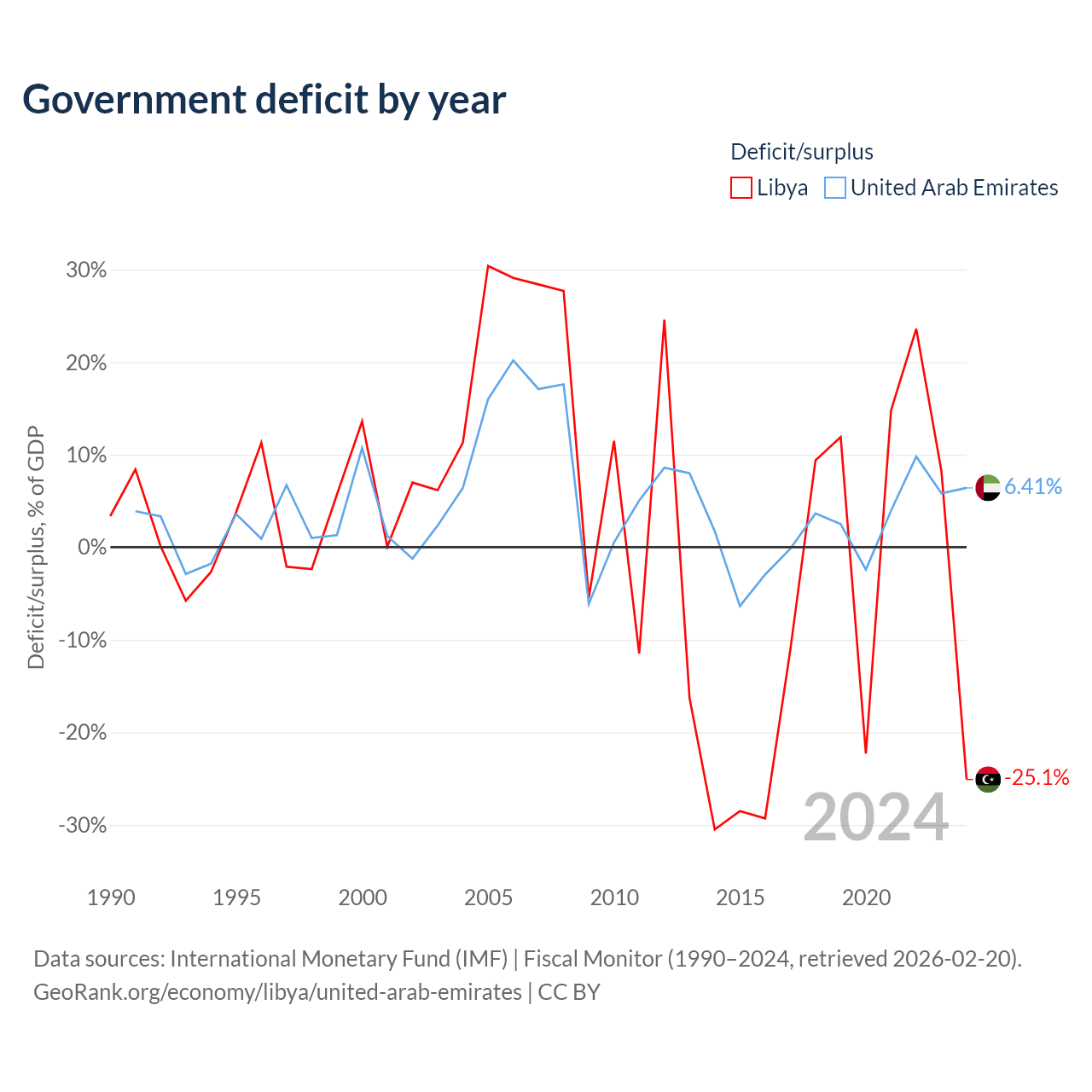 - International Monetary Fund (IMF) | Fiscal Monitor (1990–2024, retrieved 2026-02-20)