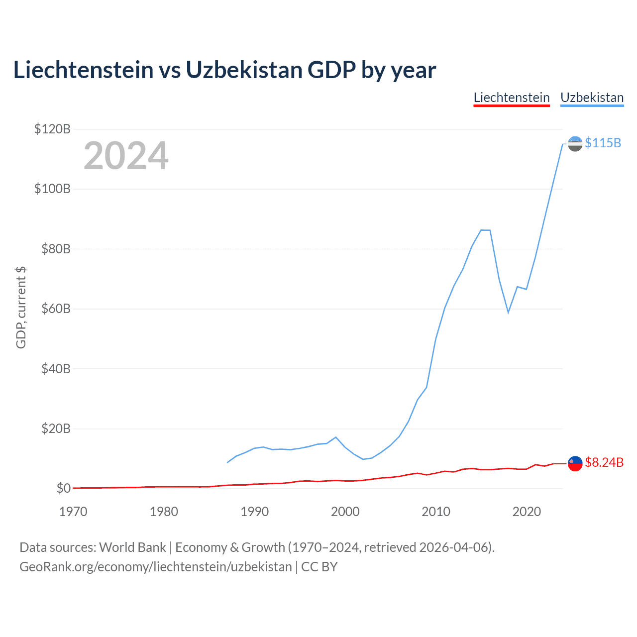 Liechtenstein vs Uzbekistan GDP by year