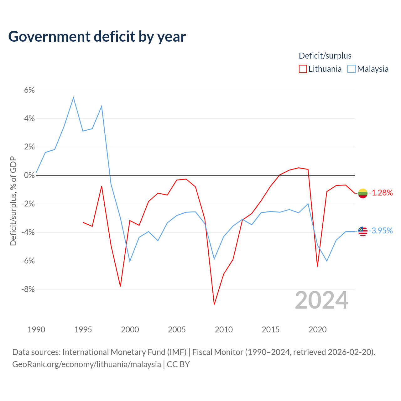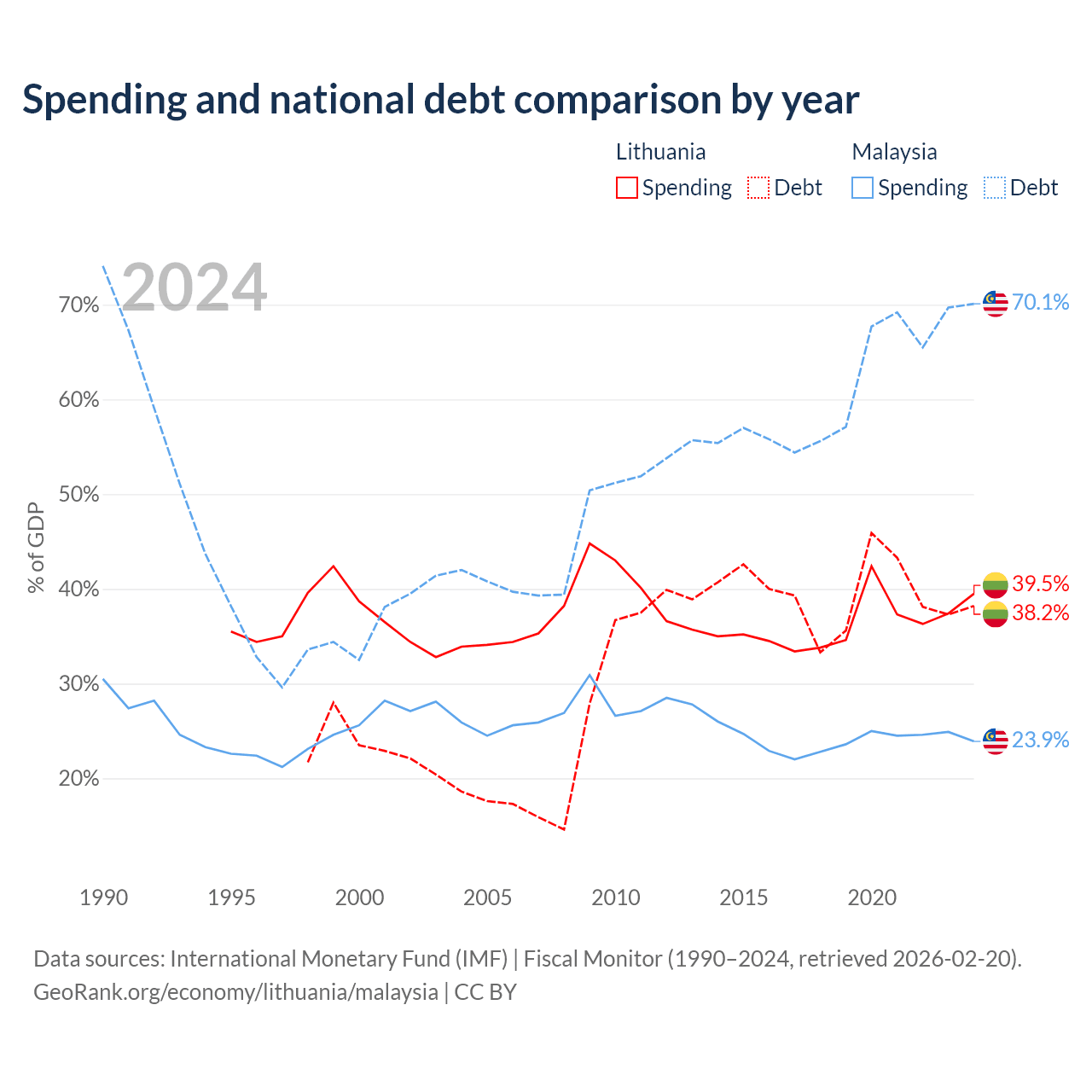 - International Monetary Fund (IMF) | Fiscal Monitor (1990–2024, retrieved 2026-02-20)