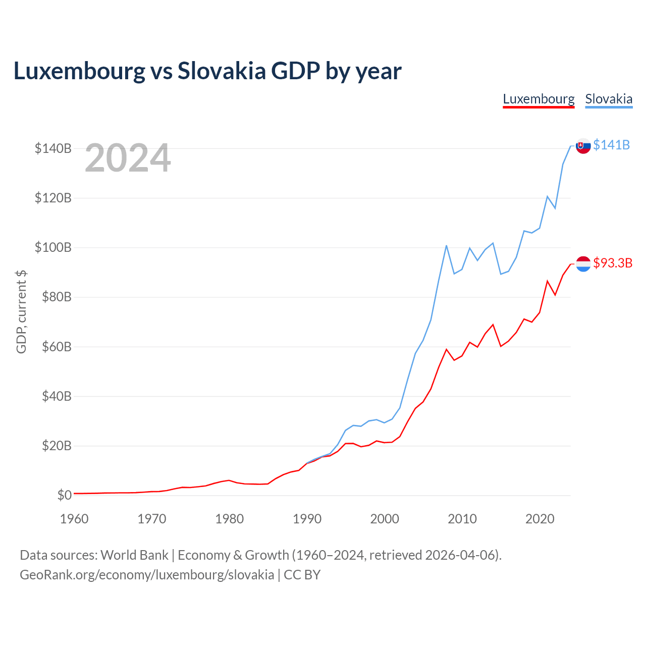 Luxembourg vs Slovakia GDP by year