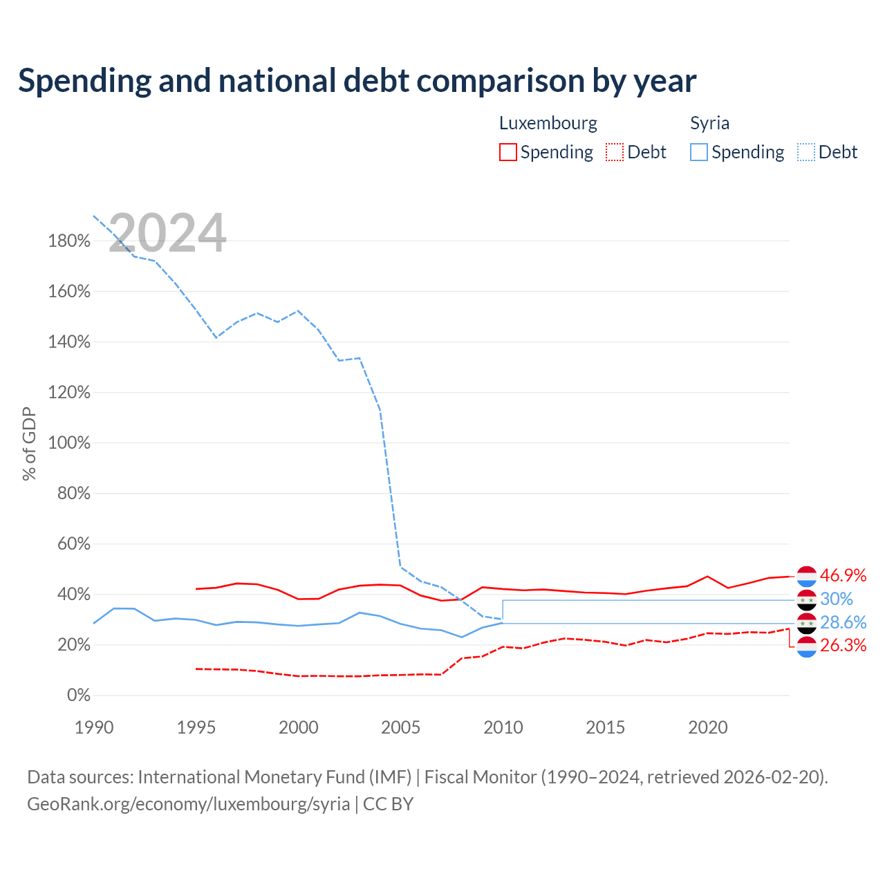 Luxembourg has $24.5B in government debt (26.3% of GDP), compared to $18.4B (30% of GDP) in Syria.
