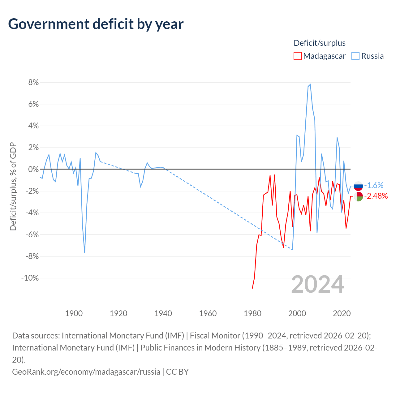 - International Monetary Fund (IMF) | Public Finances in Modern History (1885–1996, retrieved 2026-02-20)