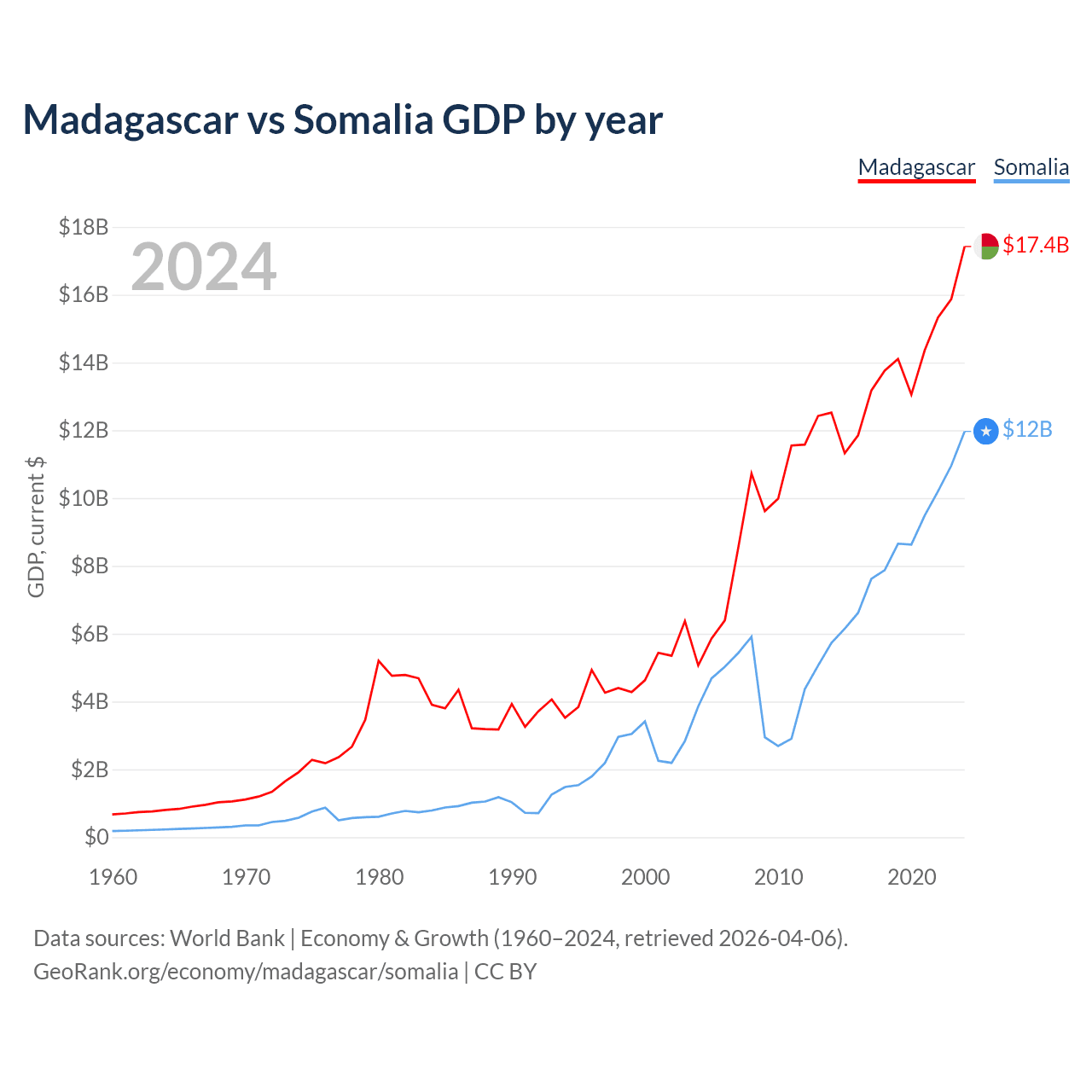 Madagascar vs Somalia GDP by year