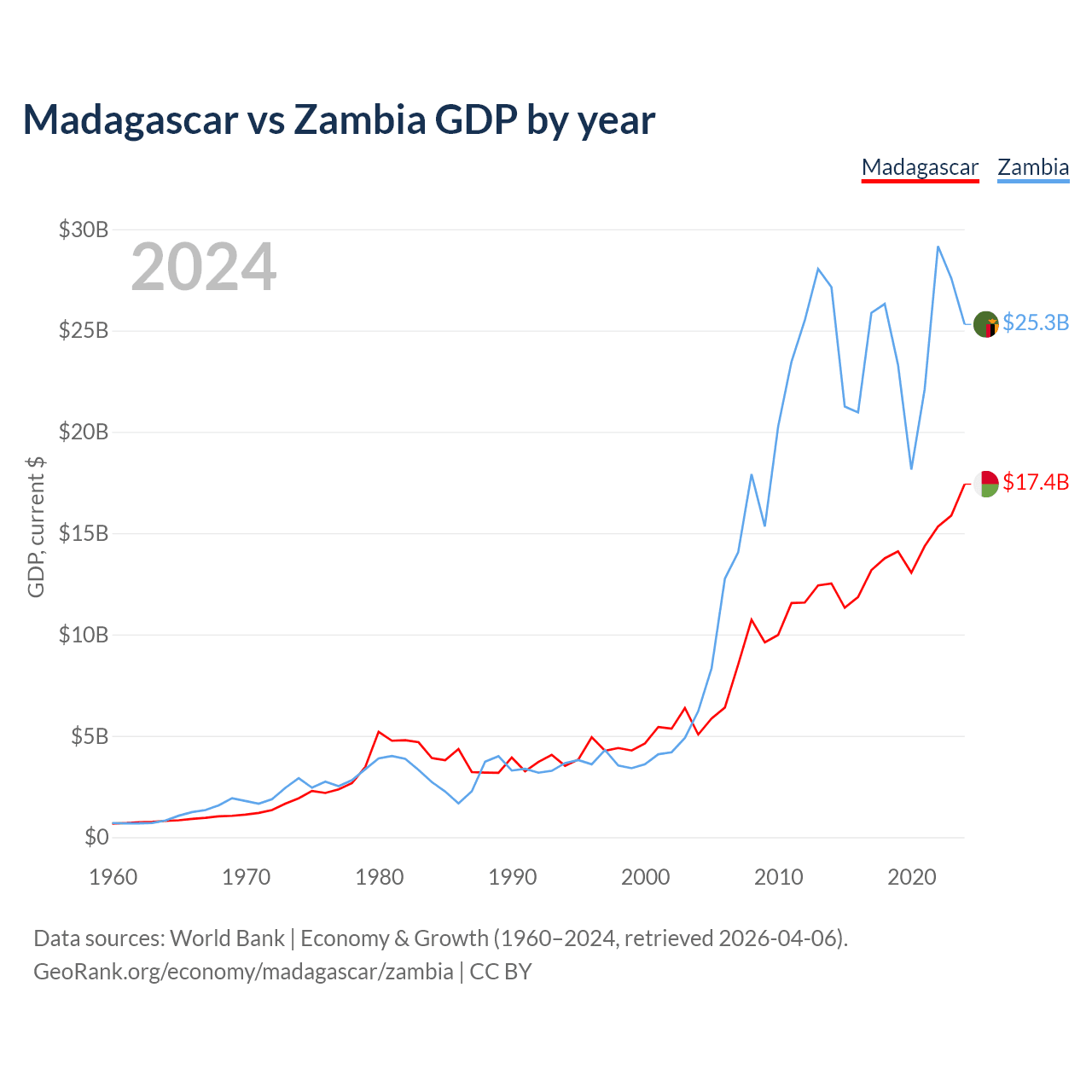 Madagascar vs Zambia GDP by year