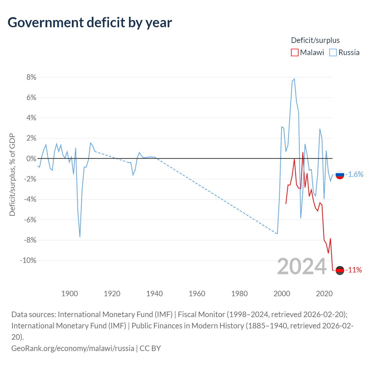- International Monetary Fund (IMF) | Public Finances in Modern History (1885–1996, retrieved 2026-02-20)