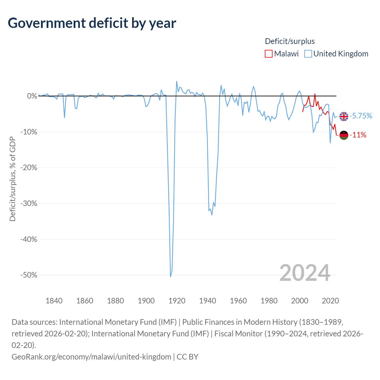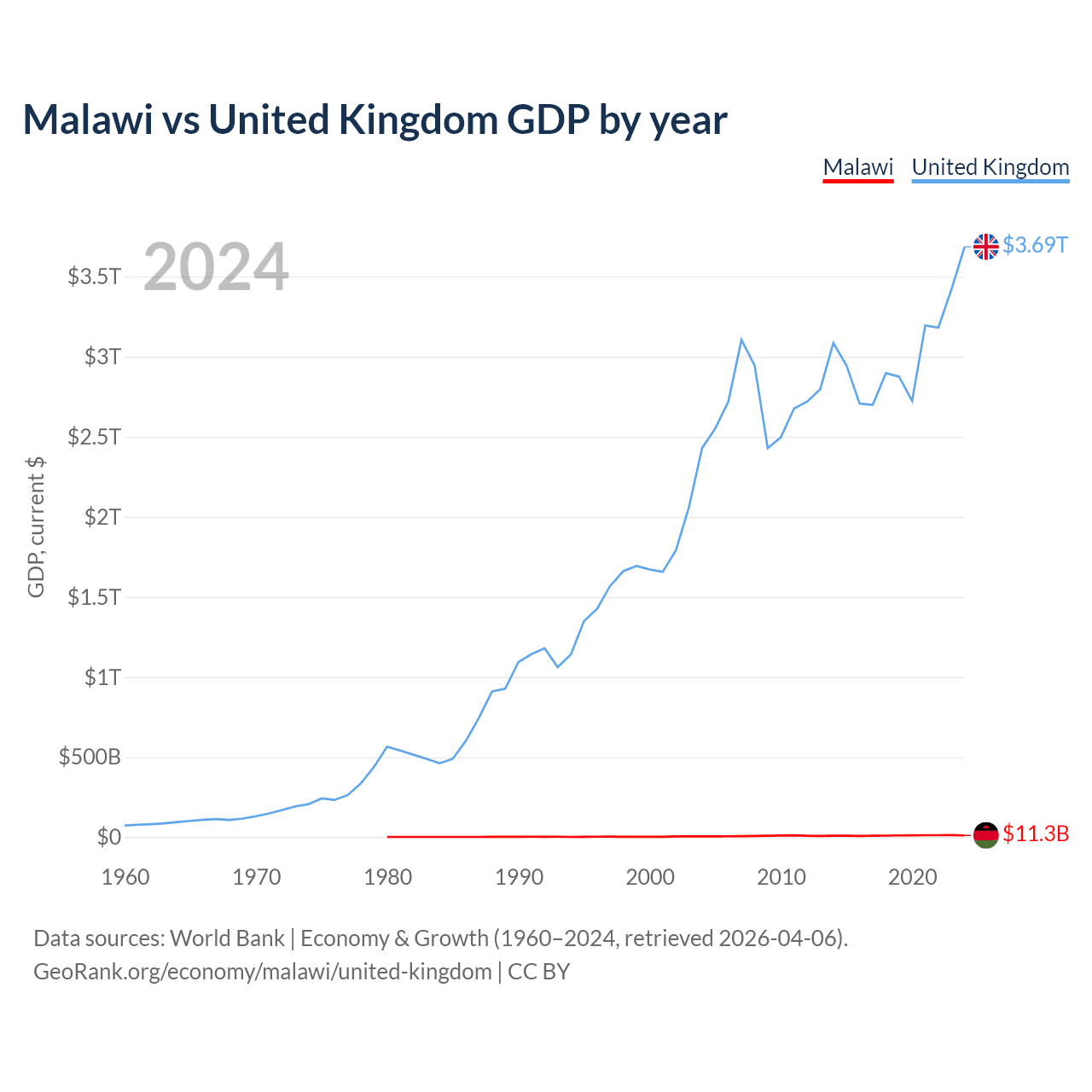 Malawi vs United Kingdom GDP by year