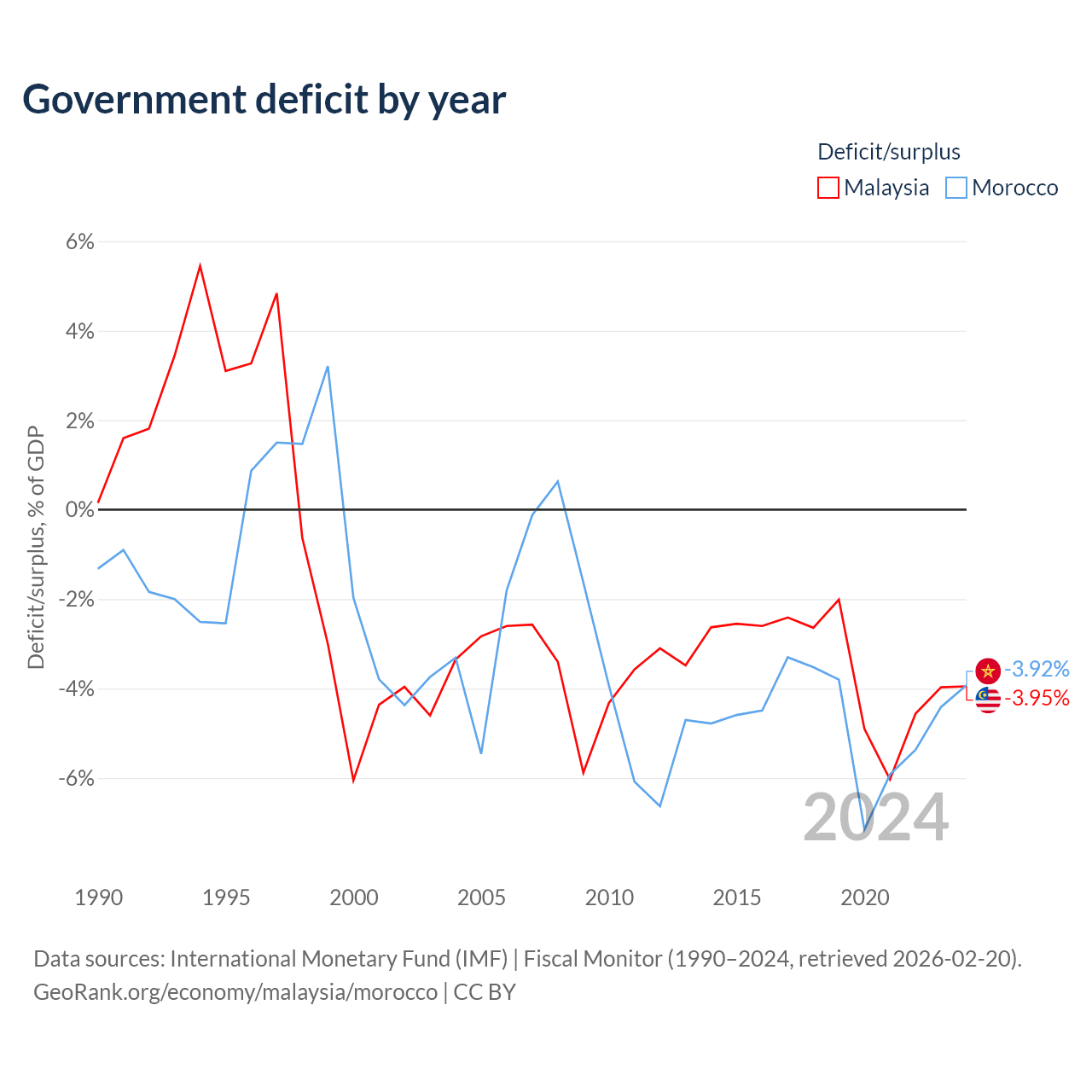 - International Monetary Fund (IMF) | Fiscal Monitor (1990–2024, retrieved 2026-02-20)