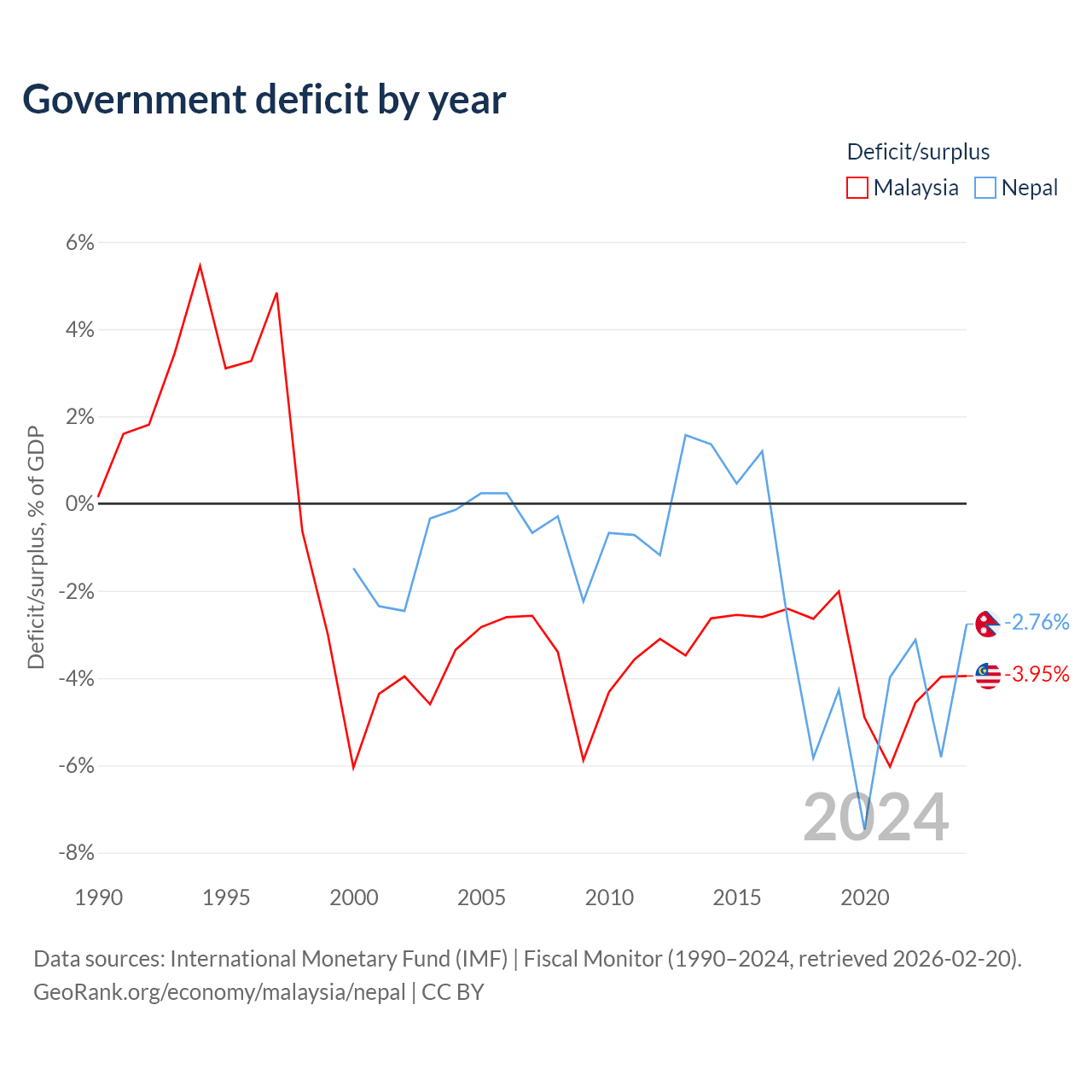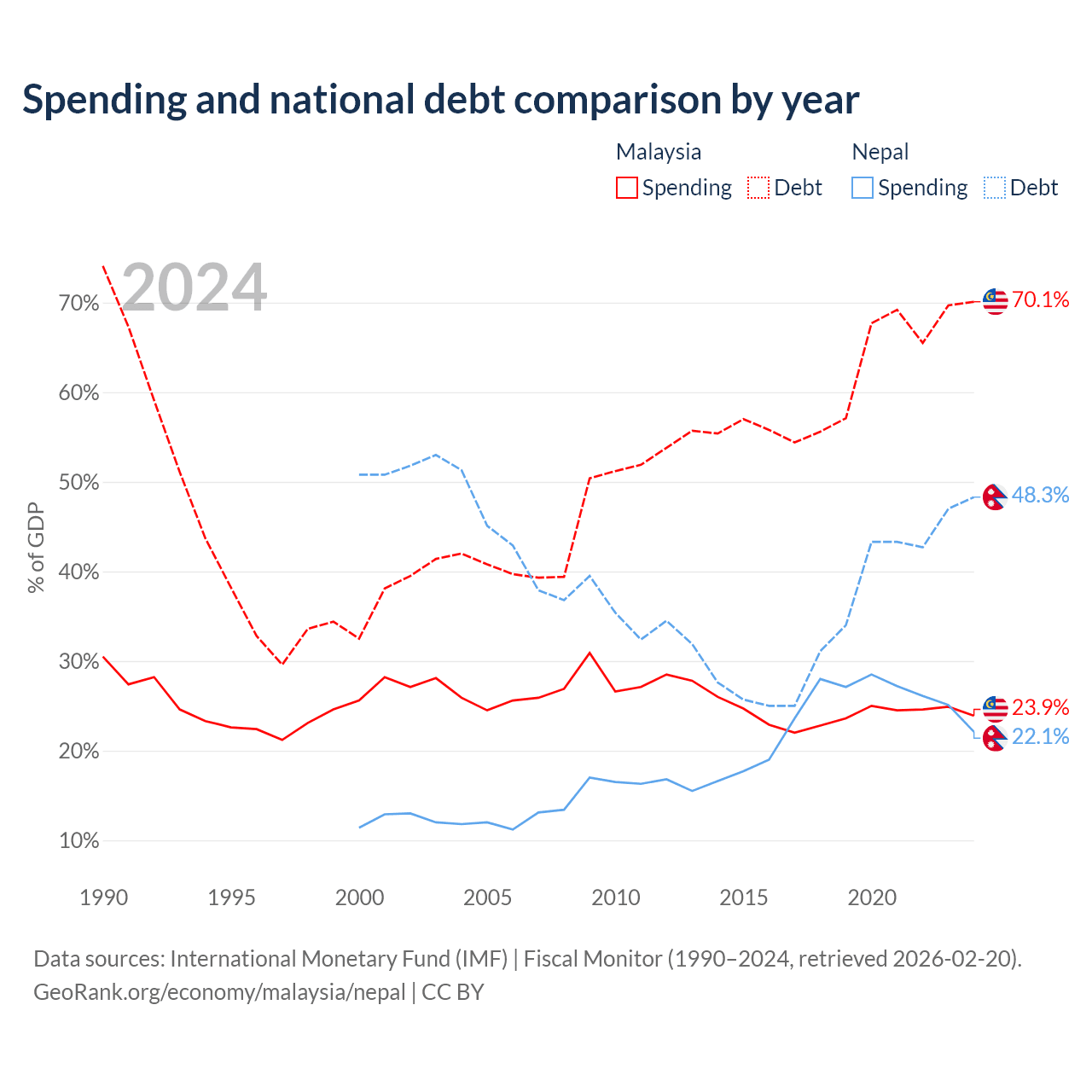 - International Monetary Fund (IMF) | Fiscal Monitor (1990–2024, retrieved 2026-02-20)