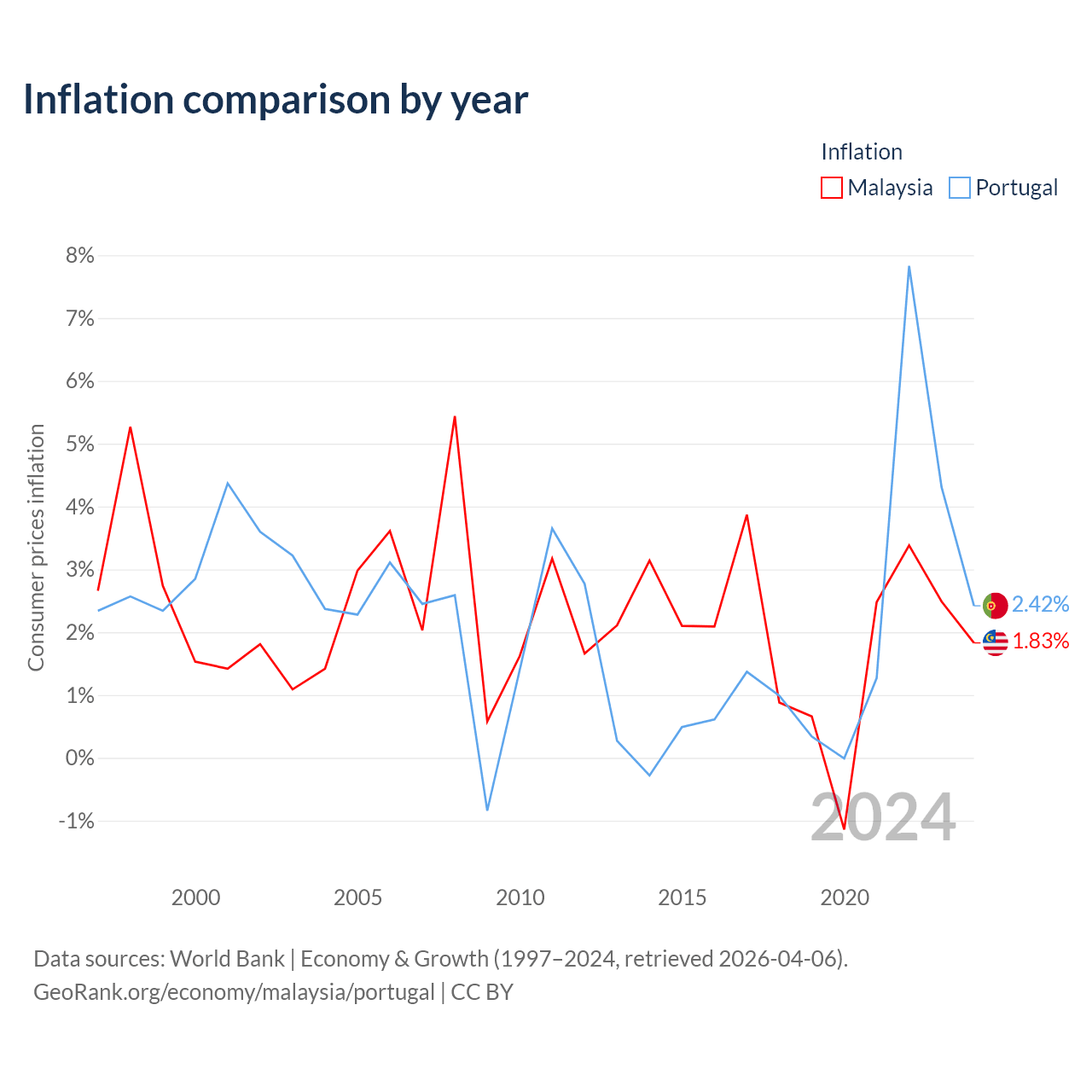 Data sources: World Bank | Economy & Growth (1960–2024, retrieved 2026-04-06).