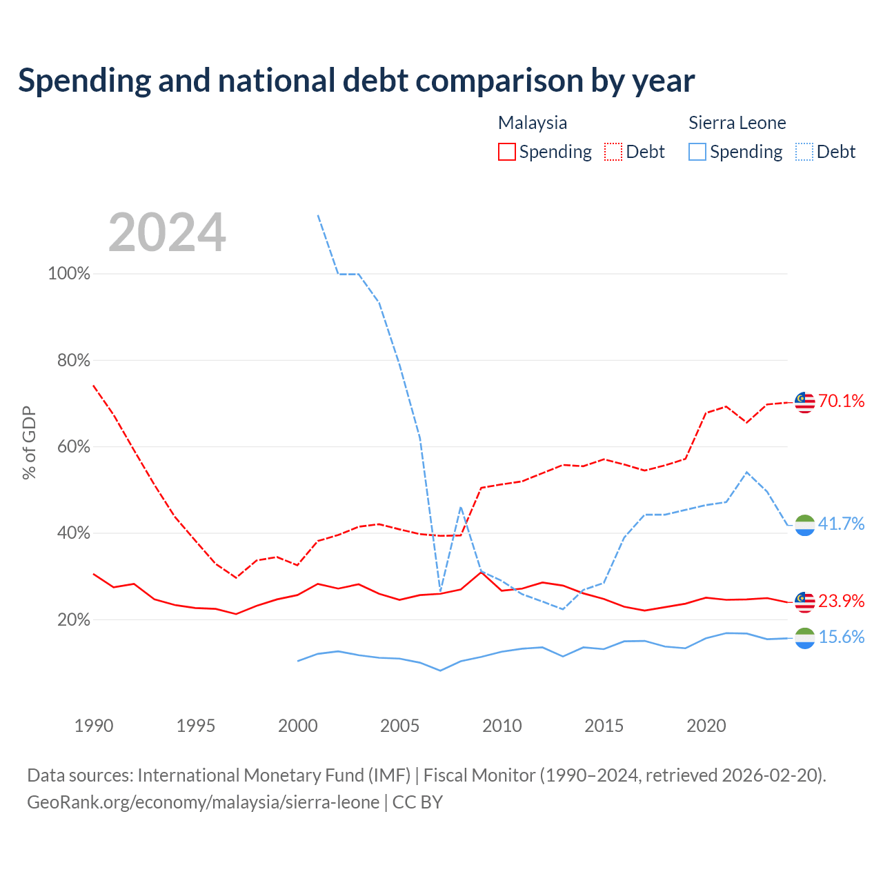 - International Monetary Fund (IMF) | Fiscal Monitor (1990–2024, retrieved 2026-02-20)
