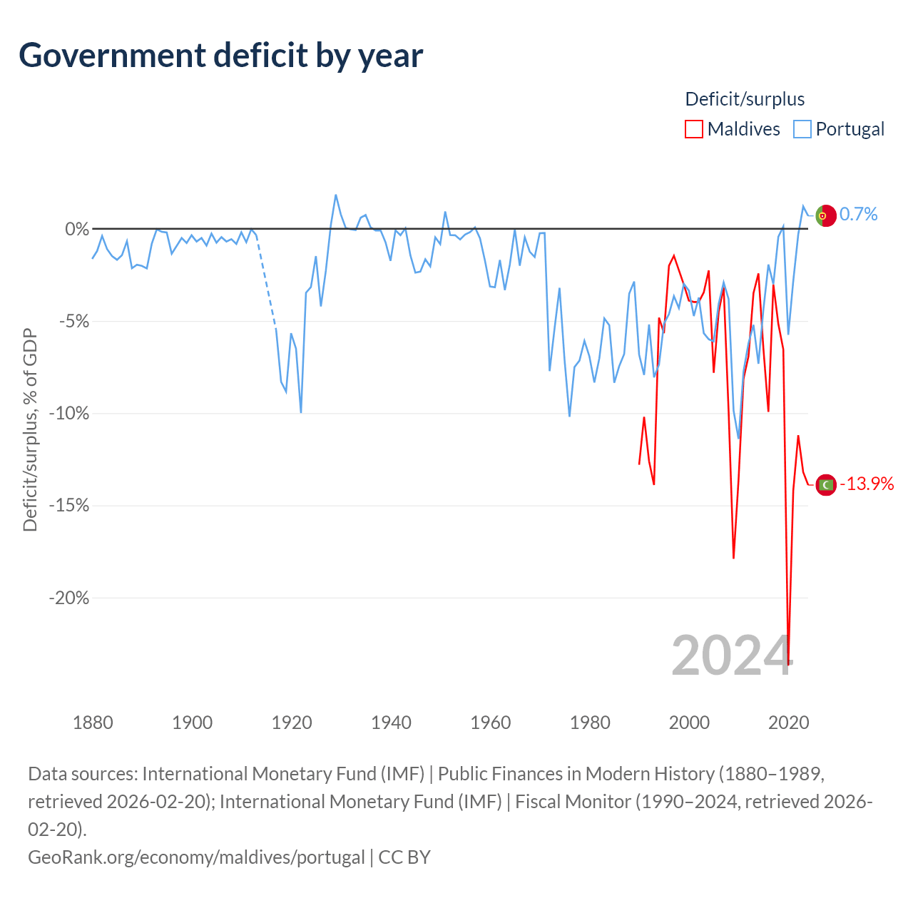 - International Monetary Fund (IMF) | Public Finances in Modern History (1880–1996, retrieved 2026-02-20)