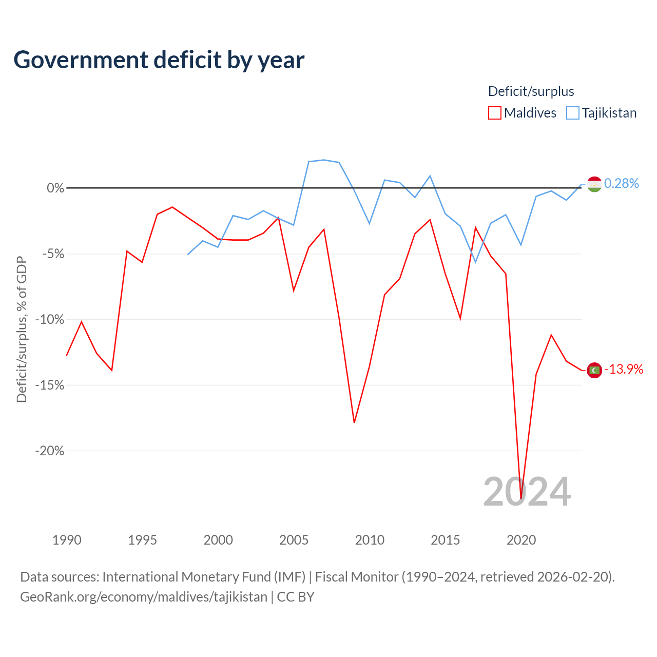 - International Monetary Fund (IMF) | Fiscal Monitor (1990–2024, retrieved 2026-02-20)