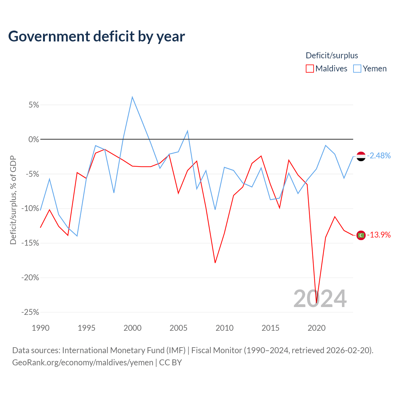 - International Monetary Fund (IMF) | Fiscal Monitor (1990–2024, retrieved 2026-02-20)
