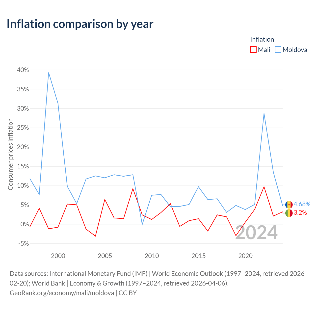 Mali vs Moldova GDP by year