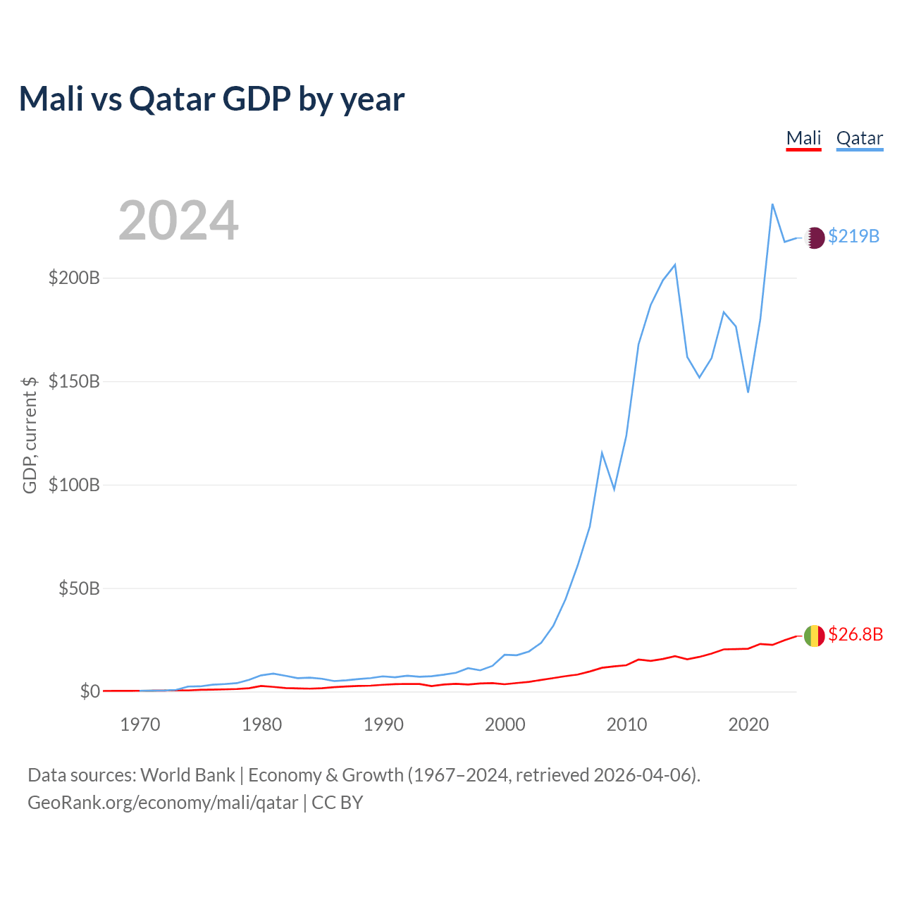 Mali vs Qatar GDP by year