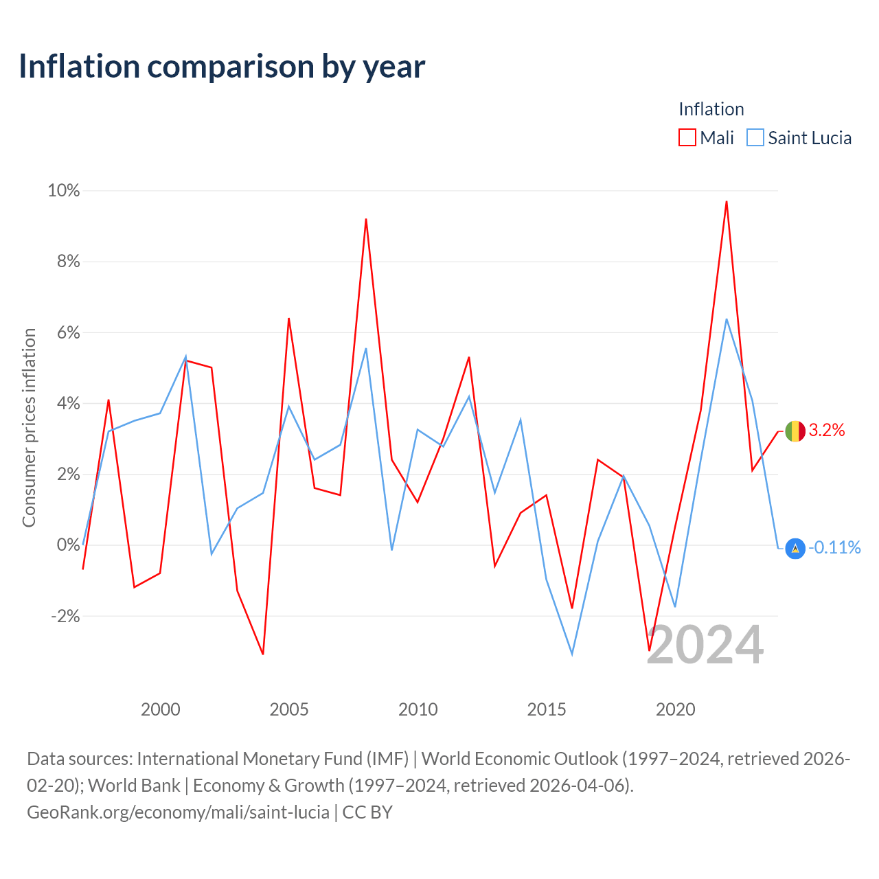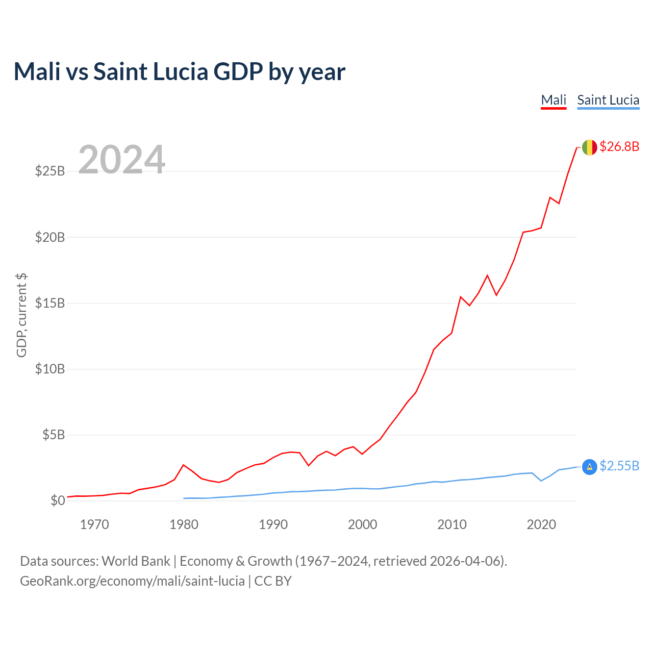 Mali vs Saint Lucia GDP by year