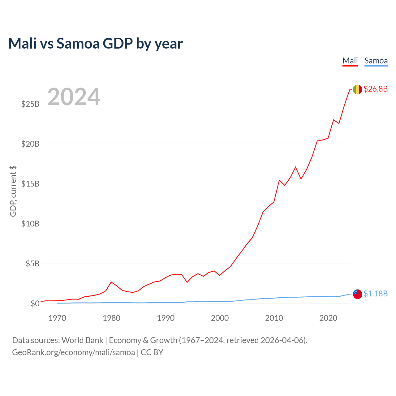 Mali vs Samoa GDP by year