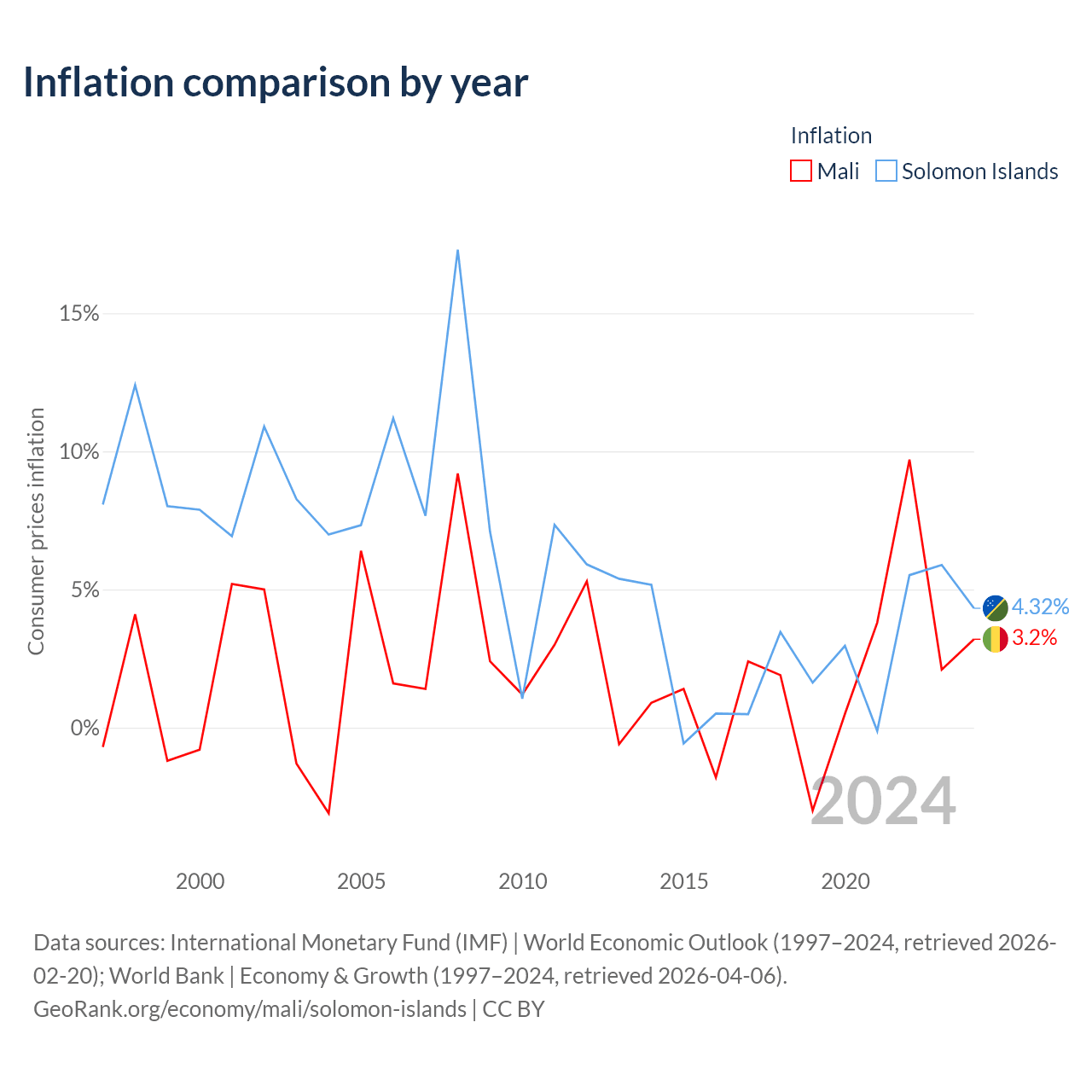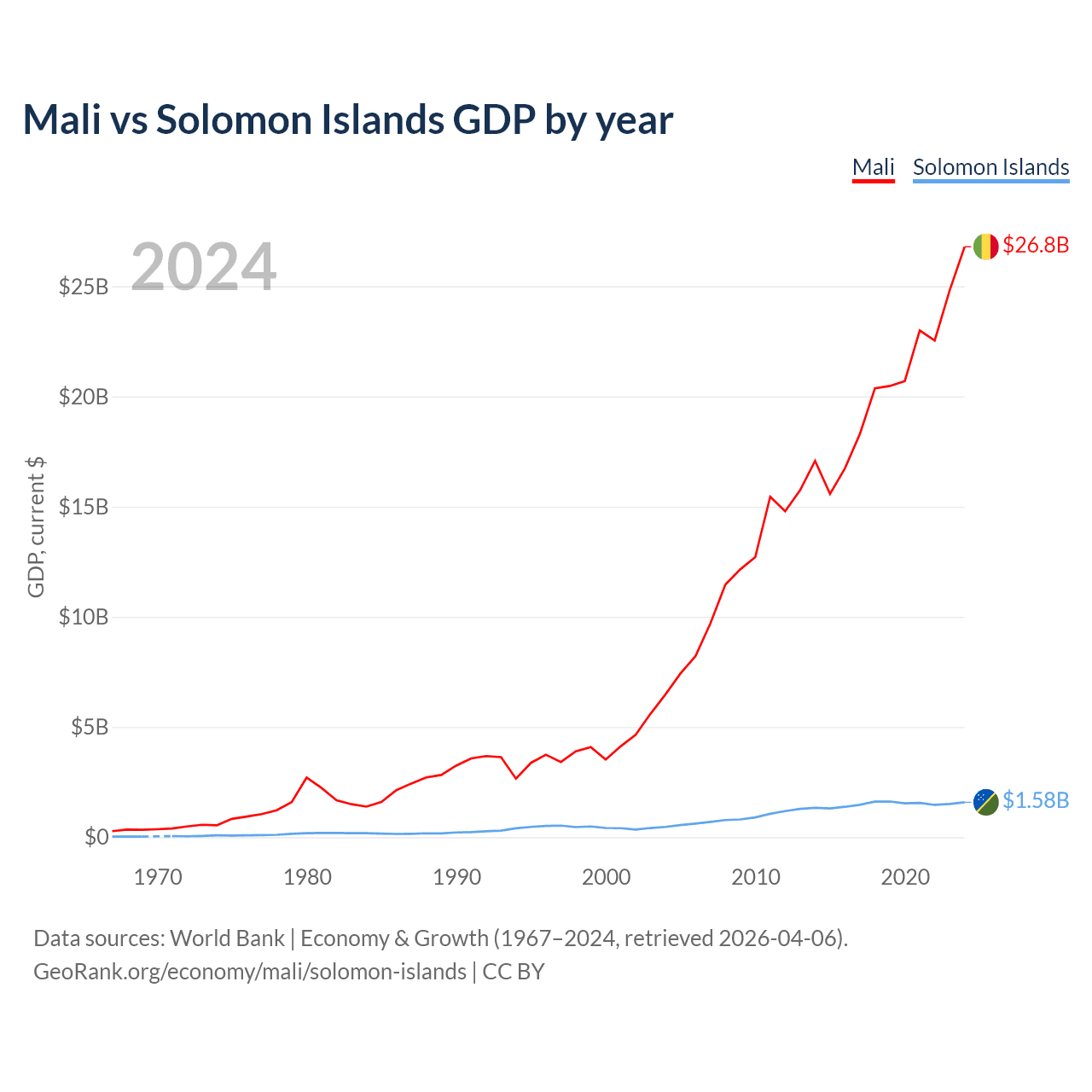 Mali vs Solomon Islands GDP by year