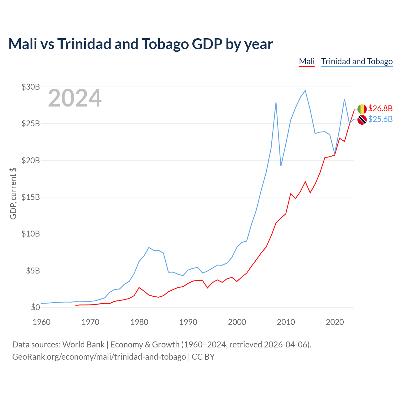 Mali vs Trinidad and Tobago GDP by year