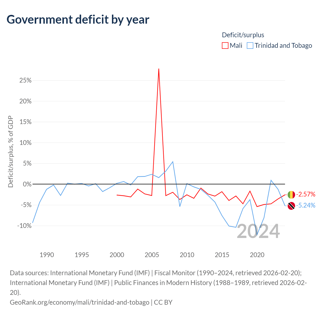 - International Monetary Fund (IMF) | Fiscal Monitor (1990–2024, retrieved 2026-02-20)