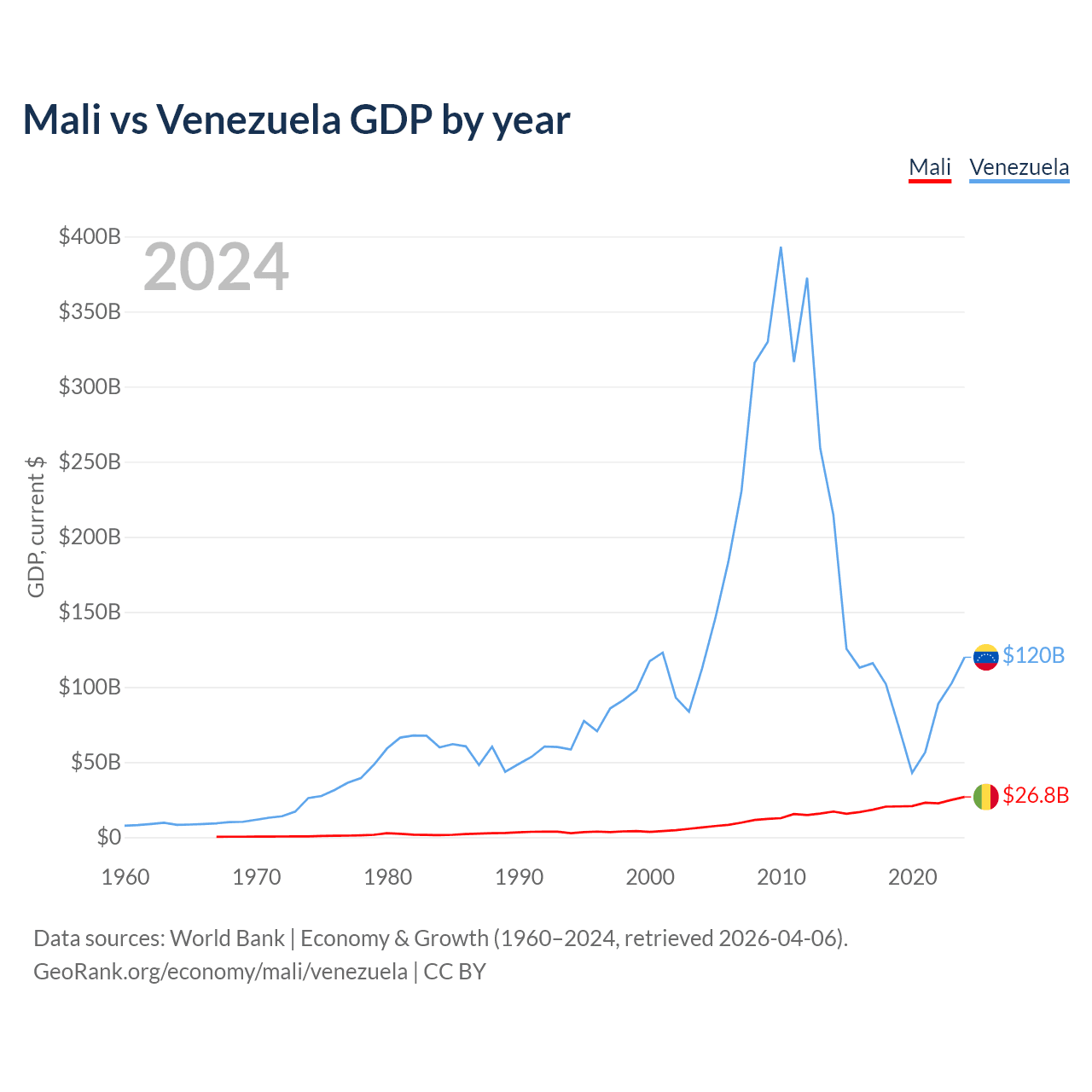 Mali vs Venezuela GDP by year