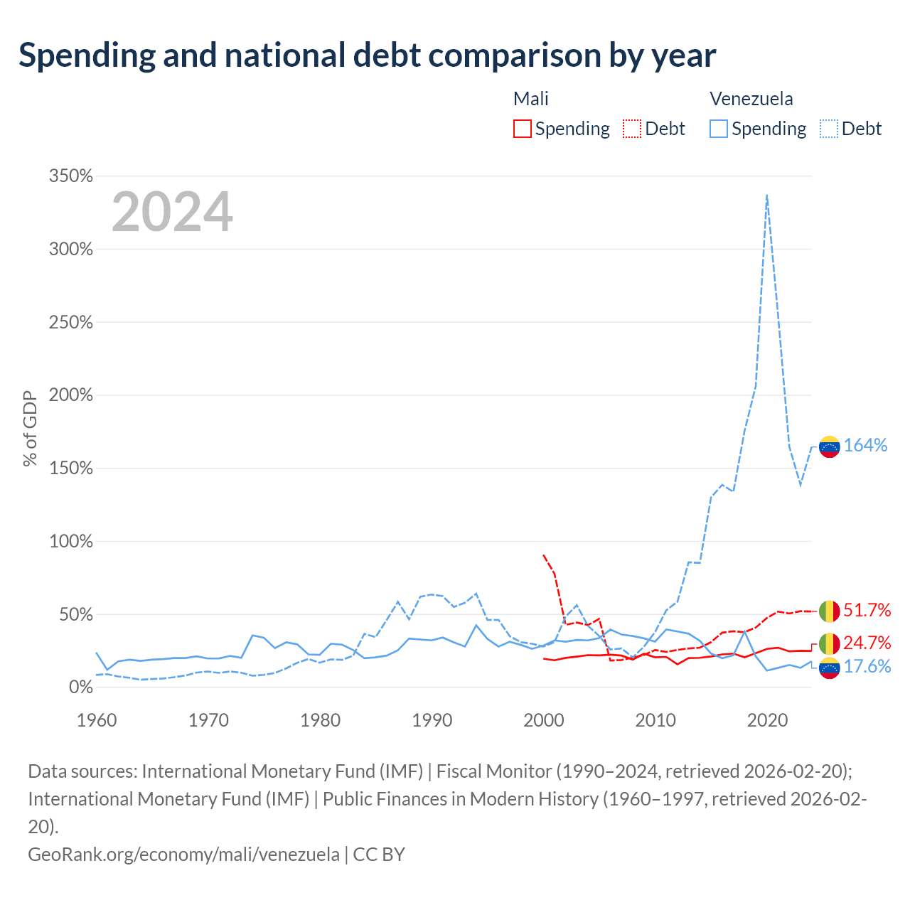 Mali has $13.9B in government debt (51.7% of GDP), compared to $197B (164.3% of GDP) in Venezuela.