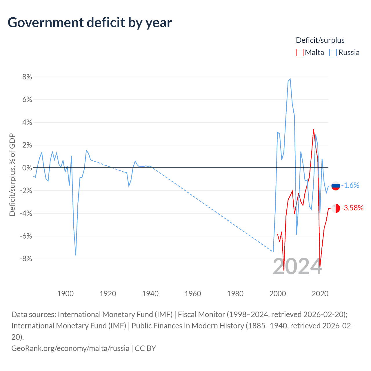 - International Monetary Fund (IMF) | Public Finances in Modern History (1885–1996, retrieved 2026-02-20)