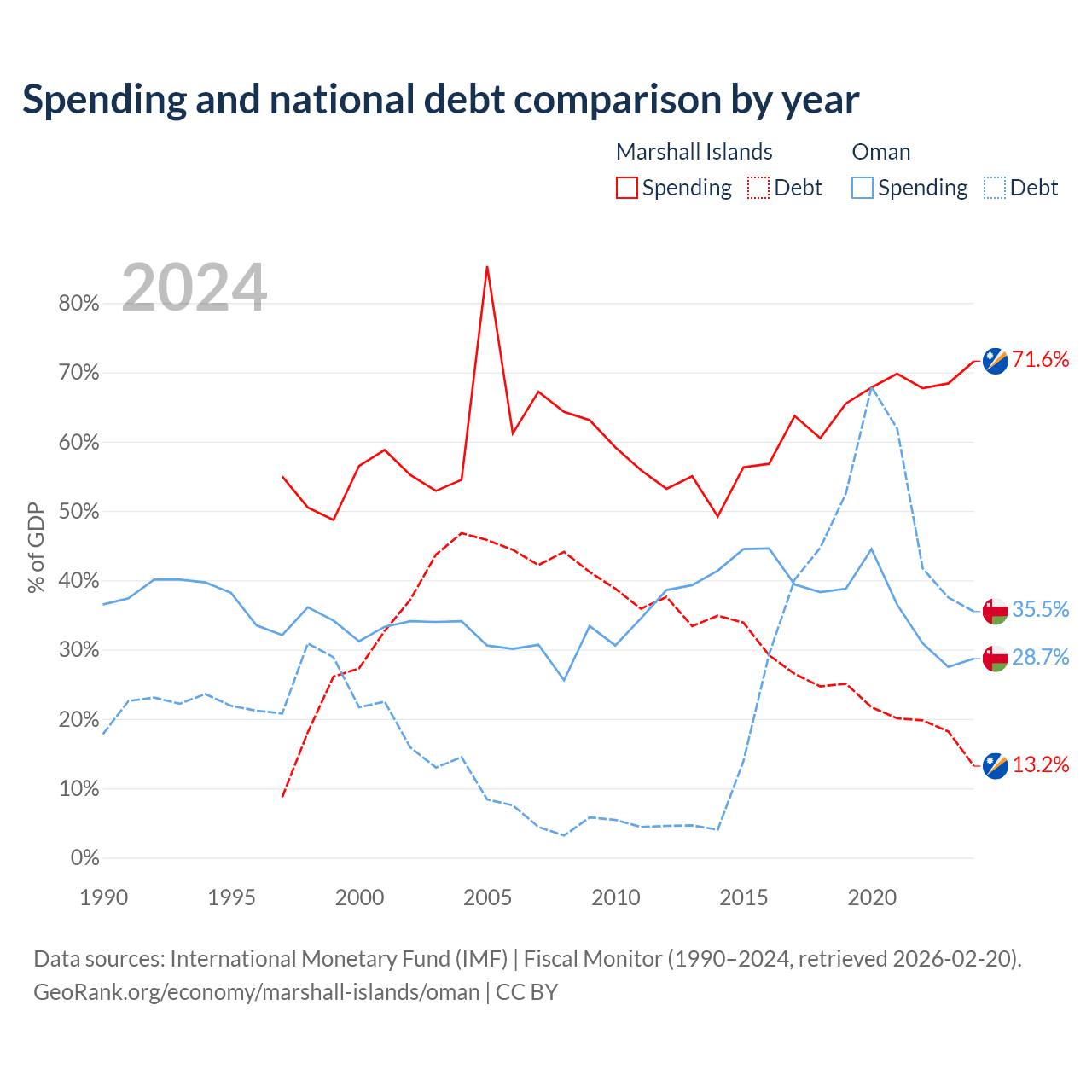 - International Monetary Fund (IMF) | Fiscal Monitor (1990–2024, retrieved 2026-02-20)