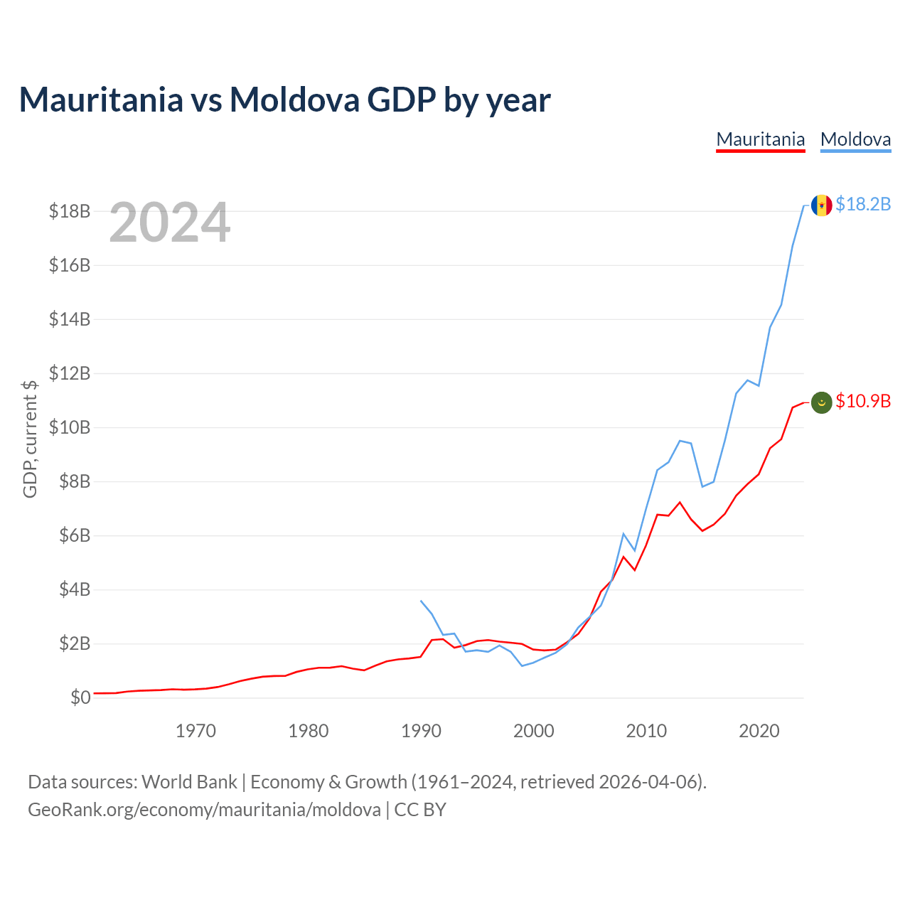 Mauritania vs Moldova GDP by year