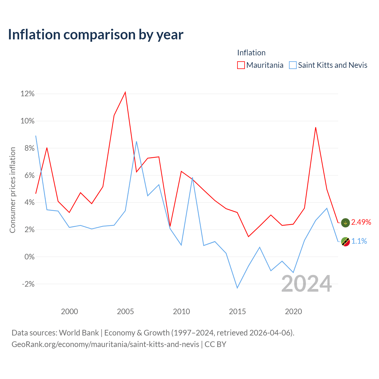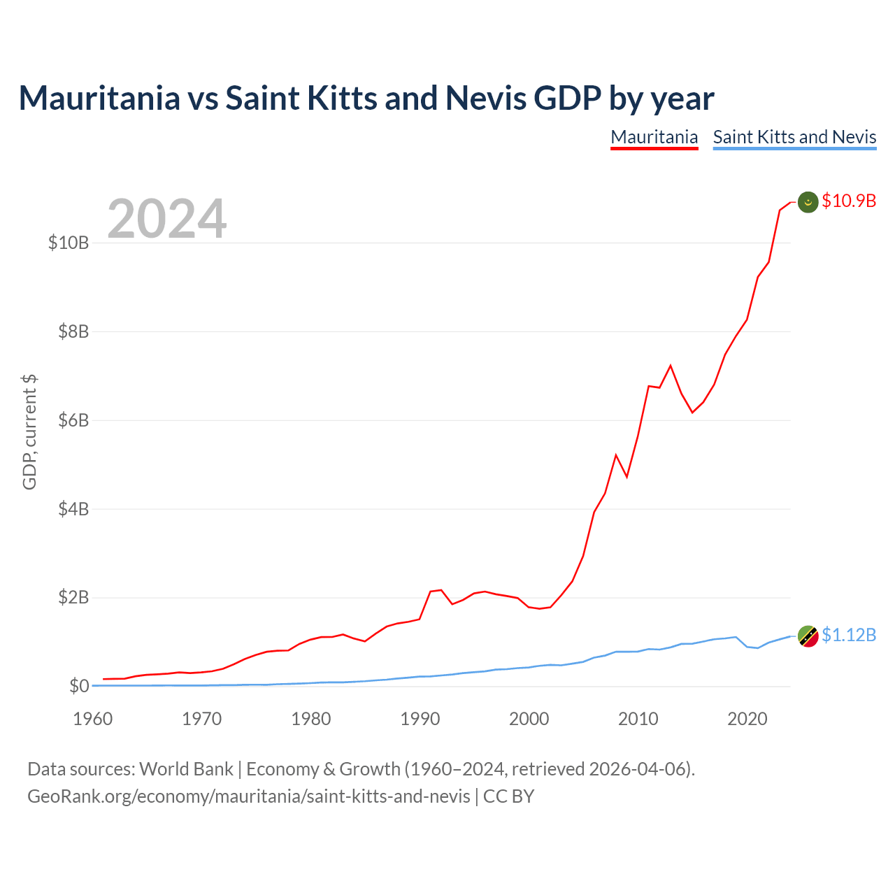 Mauritania vs Saint Kitts and Nevis GDP by year
