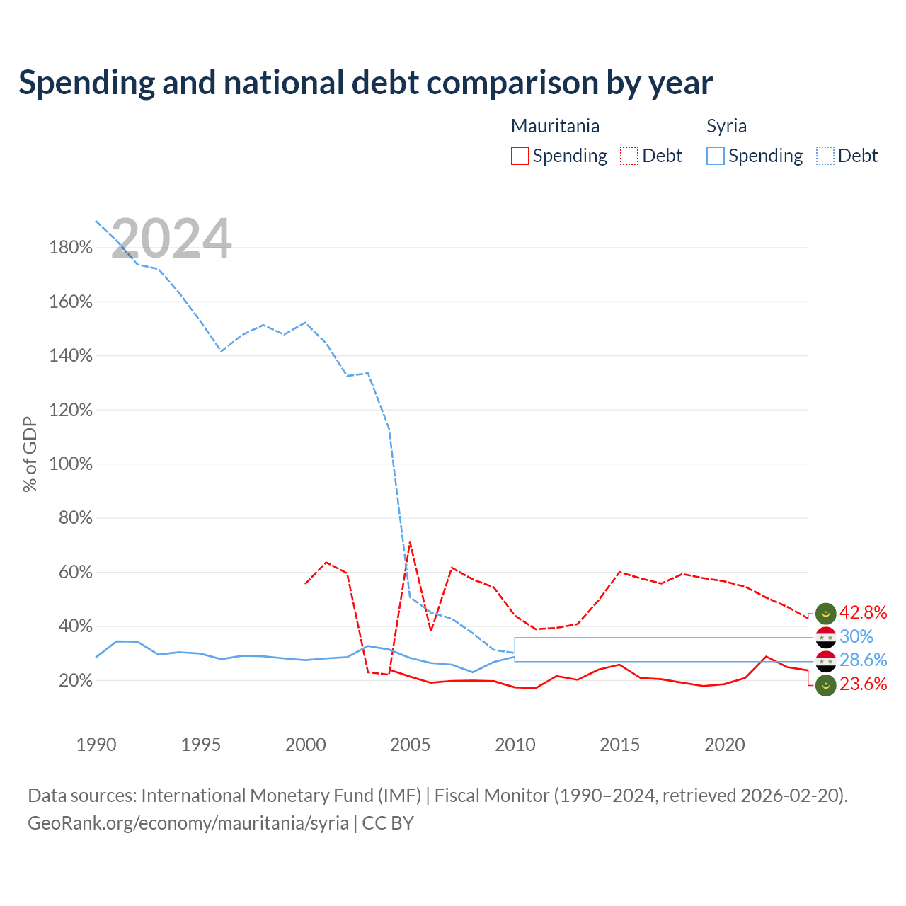 Mauritania has $4.67B in government debt (42.8% of GDP), compared to $18.4B (30% of GDP) in Syria.