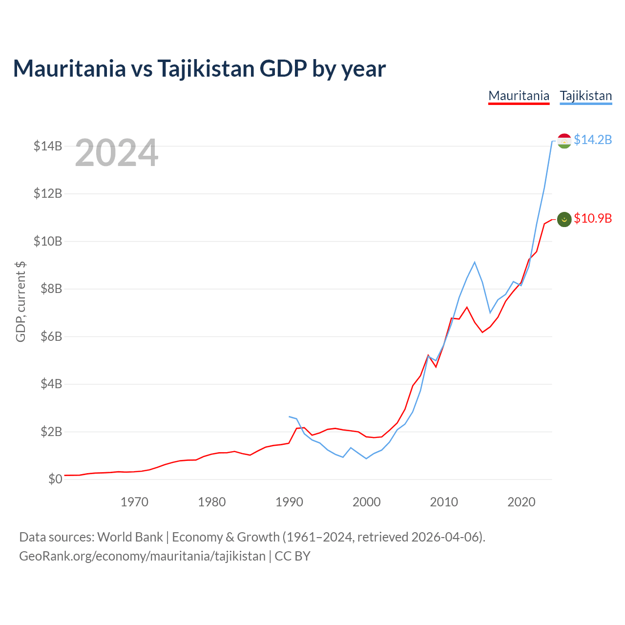 Mauritania vs Tajikistan GDP by year