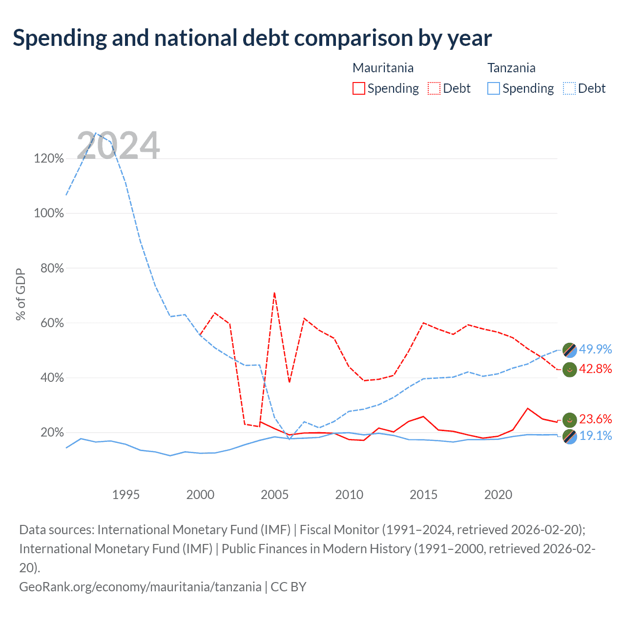 Mauritania has $4.67B in government debt (42.8% of GDP), compared to $39.3B (49.9% of GDP) in Tanzania.