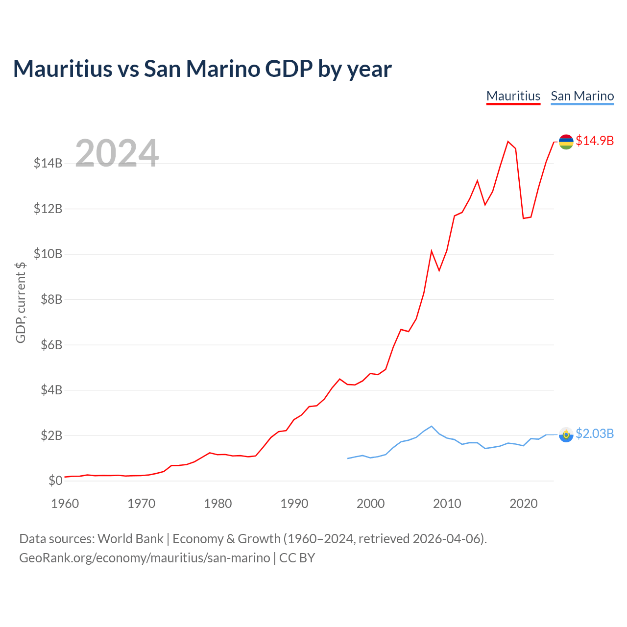 Mauritius vs San Marino GDP by year
