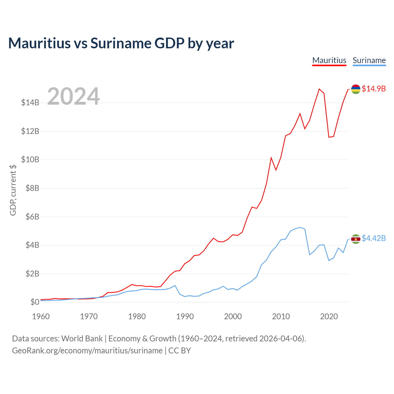 Mauritius vs Suriname GDP by year