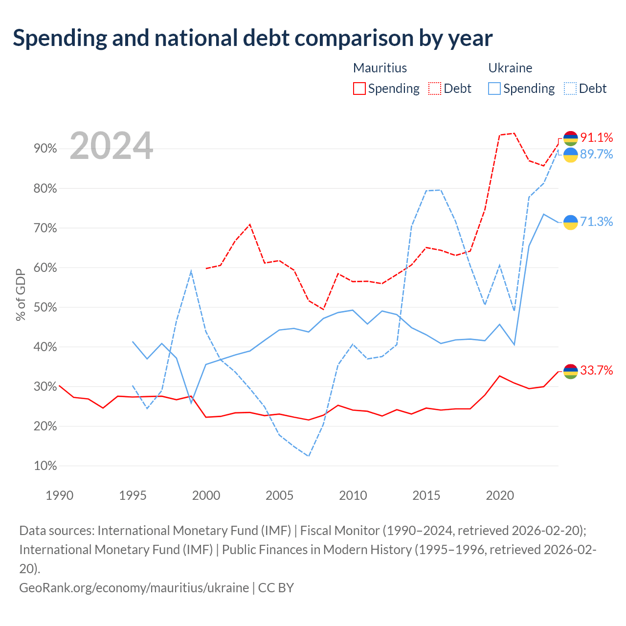 Mauritius has $13.6B in government debt (91.1% of GDP), compared to $171B (89.7% of GDP) in Ukraine.