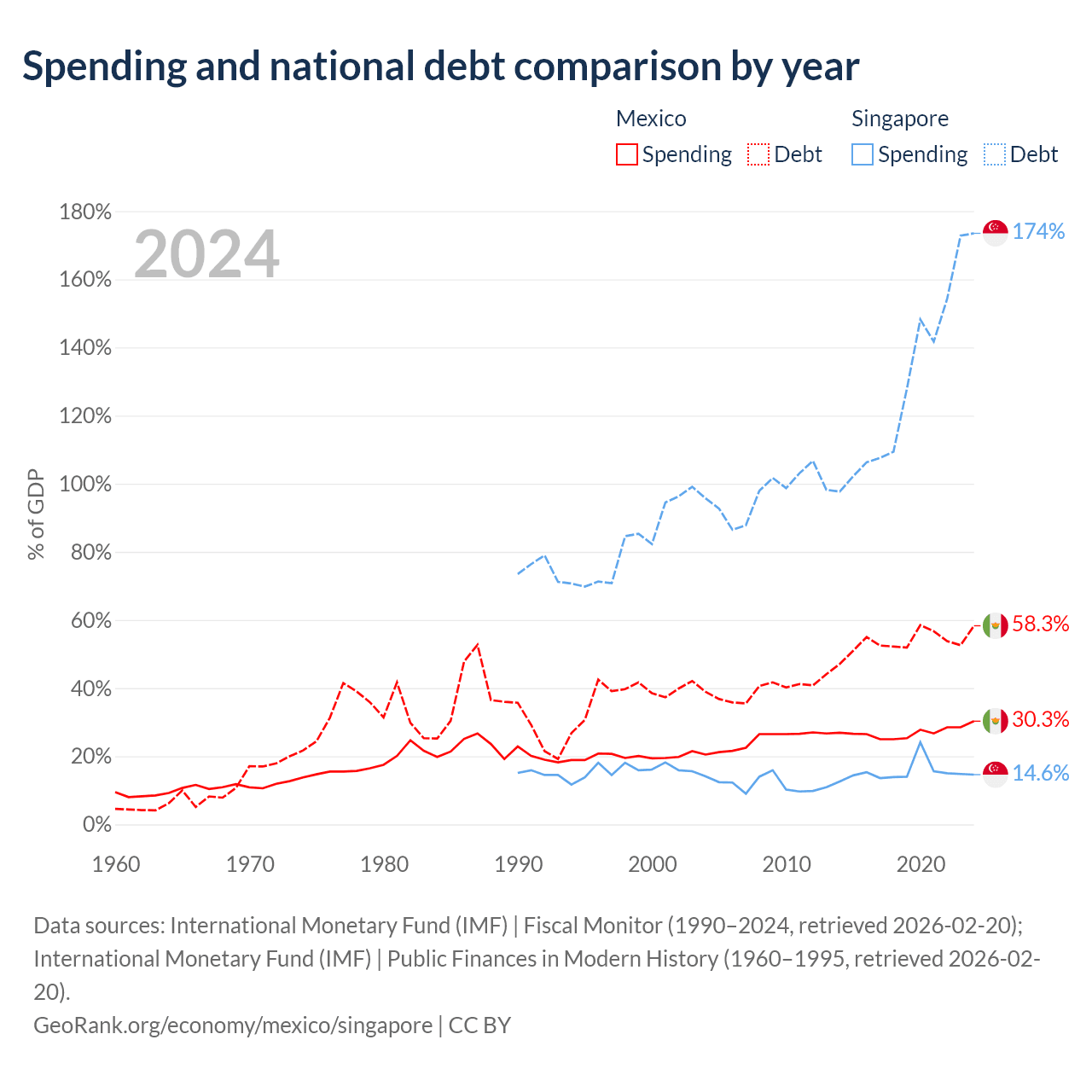 Mexico has $1.08T in government debt (58.3% of GDP), compared to $950B (173.5% of GDP) in Singapore.